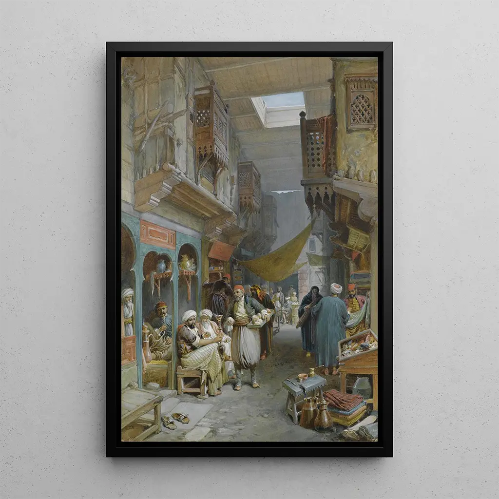 Bazar Suez : een levendig schilderij vol leven en kleuren In "Bazar Suez" dompelt William Simpson ons onder in een bruisende Egyptische markt, waar de heldere kleuren en minutieuze details de essentie van het dagelijks leven vastleggen. De kraampjes barsten van exotische goederen, terwijl de figuren, gekleed in traditionele kostuums, druk bezig zijn in een sfeer van handel en gezelligheid. De techniek van Simpson, die aquarel en tekening combineert, creëert diepte en helderheid die de scène bijna tastbaar maken. Dit schilderij nodigt uit tot een visuele verkenning, waarbij elk element een verhaal vertelt en de blik van de toeschouwer wordt meegesleept in een wervelwind van sensaties. William Simpson : een getuige van het Victoriaanse Oosten William Simpson, Britse kunstschilder en illustrator uit de 19e eeuw, staat bekend om zijn levendige weergaven van het oosterse leven. Onverzettelijke reiziger, hij wist de ziel van de landen die hij bezocht vast te leggen, met name Egypte en het Midden-Oosten. Zijn stijl, beïnvloed door het realisme en het impressionisme, onderscheidt zich door een bijzondere aandacht voor details en een palet van levendige kleuren. Simpson speelde een sleutelrol in de documentatie van oosterse culturen op een moment dat het Westen begon interesse te tonen in deze verre landen. Zijn kunstwerk, "Bazar Suez", getuigt van deze fascinatie en van zijn inzet om de culturele diversiteit van zijn tijd te vertegenwoordigen. Een decoratief kunstdruk met meerdere voordelen De kunstdruk van "Bazar Suez" is een ideaal decoratief stuk om uw interieur te verrijken, of het nu in een woonkamer, kantoor of slaapkamer is. De kwaliteit van de afdruk en de trouw aan de originele kleuren maken van dit doek een waar meesterwerk om te bewonderen. Door dit kunstwerk aan uw inrichting toe te voegen, brengt u een vleugje exotisme en geschiedenis in uw ruimte, terwijl u de nieuwsgierigheid van uw gasten wekt. Met zijn onmiskenbare esthetische aantrekkingskracht is deze kunstdruk van William Simpson een verstandige keuze voor wie kunst en decoratie wil combineren.