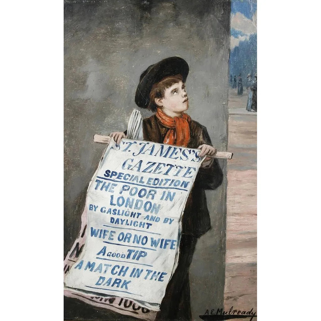 Kunstdruk | Een krantenverkoper in Londen - Augustus Edwin Mulready