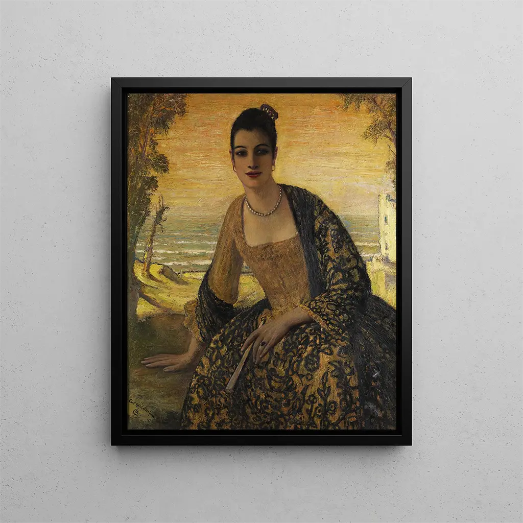 Reproductie Vrouw Spaans - Carl Kricheldorf – Boeiende introductie De "Vrouw Spaans" kunstdruk van Carl Kricheldorf geldt als een iconisch werk dat de rijkdom en diepgang van de kunst uit het begin van de 20e eeuw onthult. In dit doek slaagt de kunstenaar erin de essentie van de Spaanse cultuur vast te leggen door de lens van zijn unieke blik. Het werk roept niet alleen de schoonheid van een vrouw op, maar ook een sfeer vol emoties en verhalen. Deze voorstelling, zowel intiem als universeel, nodigt de kijker uit om onder te dompelen in een wereld waar sensualiteit en de kracht van tradities samenkomen. Stijl en uniekheid van het werk De stijl van Kricheldorf onderscheidt zich door een uitzonderlijke beheersing van kleuren en vormen. In "Vrouw Spaans" creëren de warme en levendige tinten een gezellige sfeer, terwijl de vloeiende lijnen en de delicate contouren van de vrouwelijke figuur getuigen van een zeldzaam artistiek gevoel. De kunstenaar speelt met het licht, benadrukt de gelaatstrekken en de details van de traditionele jurk, wat het werk bijna tastbaar maakt. Elke penseelstreek lijkt een verhaal te vertellen, elke schaduw en elke lichtvlek voegt diepte toe aan de narratieve laag van de compositie. Het vermogen om techniek en emotie te combineren maakt van Kricheldorf een meester uit zijn tijd, en "Vrouw Spaans" is daar een perfect voorbeeld van. De kunstenaar en zijn invloed Carl Kricheldorf, geboren aan het eind van de 19e eeuw, wist zich te vestigen in de kunstwereld dankzij zijn vernieuwende visie en zijn gedurfde benadering van traditionele thema's. Geïnspireerd door de artistieke stromingen van zijn tijd, zoals het symbolisme en het impressionisme, wist Kricheldorf deze elementen te integreren in zijn eigen stijl, waardoor een werk ontstond dat de tijd overstijgt. Zijn interesse in de Spaanse cultuur, vooral door zijn reizen, voedde zijn inspiratie en verrijkte zijn creaties. De kunstenaar was ook een belangrijke speler in de promotie van kunst als middel voor persoonlijke en sociale expressie, en moedigde zijn tijdgenoten aan om nieuwe wegen te verkennen. Zijn nalatenschap blijft voortbestaan, en "Vrouw Spaans" blijft een toonaangevend werk dat kunstenaars en kunstliefhebbers blijft inspireren. Een muurdecoratie