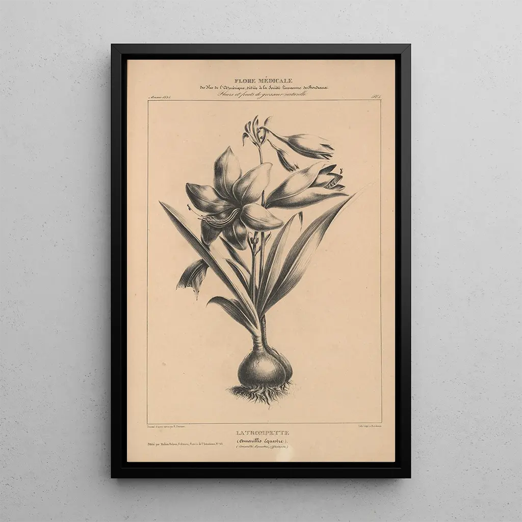 Flore d'Amérique Pl28 : een ode aan de biodiversiteit De kunstdruk Flore d'Amérique Pl28 van Étienne Denisse dompelt ons onder in een levendige wereld vol kleuren en vormen. Dit doek, rijk aan details, belicht een verscheidenheid aan exotische planten, waarbij elk blad en elke bloemblad zorgvuldig is weergegeven. De heldere tinten groen, geel en rood creëren een warme en uitnodigende sfeer, die de kijker uitnodigt om de rijkdom van de flora te verkennen. De techniek van Denisse, die precisie en gevoeligheid combineert, laat bijna de textuur van de planten voelen, alsof je ze kunt aanraken. Dit werk is een ware viering van de natuur, een eerbetoon aan haar schoonheid en diversiteit. Étienne Denisse : een pionier in de bloemkunst Étienne Denisse, actief in de 19e eeuw, wordt erkend voor zijn rol in de ontwikkeling van het naturalisme in de bloemkunst. Geïnspireerd door de botanische ontdekkingen van zijn tijd, wist hij de essentie van planten vast te leggen met opmerkelijke precisie. Zijn kunstwerken, vaak besteld door wetenschappelijke instellingen, getuigen van zijn betrokkenheid bij de studie van de natuur. Denisse werd ook beïnvloed door de artistieke stromingen van zijn tijd, met name het romantisme, dat de emotie en schoonheid van de natuur waardeerde. Zijn bijdrage aan de bloemkunst is onmiskenbaar, en zijn kunstdrukken blijven kunstenaars en botanici inspireren. Een decoratief stuk met vele voordelen De kunstdruk Flore d'Amérique Pl28 is een ideaal decoratief stuk om je interieur te verfraaien, of het nu in een woonkamer, kantoor of slaapkamer is. De kwaliteit van de afdruk en de trouw aan de originele kleuren maken het een aantrekkelijke keuze voor wie een vleugje natuur in hun ruimte wil brengen. Dit doek, met zijn minutieuze details en levendige sfeer, trekt de aandacht en stimuleert gesprekken. Door deze doek in je inrichting te integreren, voeg je niet alleen een kunstwerk toe, maar breng je ook een stukje biodiversiteit in je dagelijks leven.