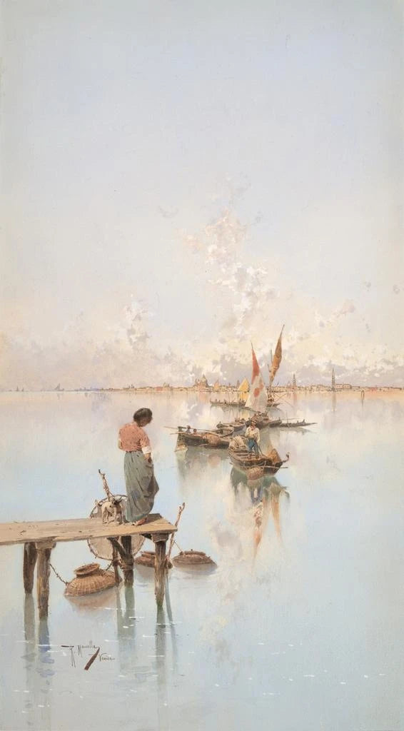 Raffaele Mainella, schilder van de 20e eeuw, staat bekend om zijn stedelijke landschappen en scènes uit het dagelijks leven, met een bijzondere focus op Venise. Zijn stijl, beïnvloed door het post-impressionisme, wordt gekenmerkt door dynamische penseelstreken en een palet van levendige kleuren. Mainella heeft de essentie van Venise weten vast te leggen, een stad vol geschiedenis en cultuur, door de contrasten en de tijdloze schoonheid te benadrukken. Zijn werk is een getuigenis van het belang van de stad in de Italiaanse kunst, en hij blijft hedendaagse kunstenaars inspireren.