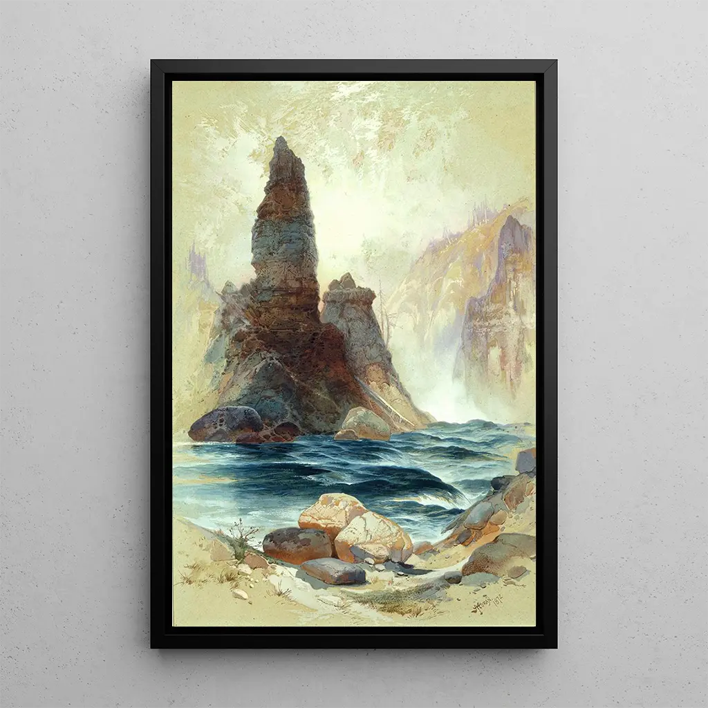 Thomas Moran, artiste influent du XIXe siècle, a su capturer la grandeur des paysages américains à travers ses œuvres. Né en Angleterre, il a émigré aux États-Unis où il a été profondément inspiré par les paysages spectaculaires du pays, notamment ceux des parcs nationaux. Son style, qui allie romantisme et réalisme, a contribué à façonner la perception des paysages américains dans l'art. "Au-dessus des chutes de la tour Yellowstone" illustre parfaitement son talent pour représenter la nature avec une intensité émotionnelle, tout en jouant un rôle clé dans la sensibilisation à la préservation de ces trésors naturels.