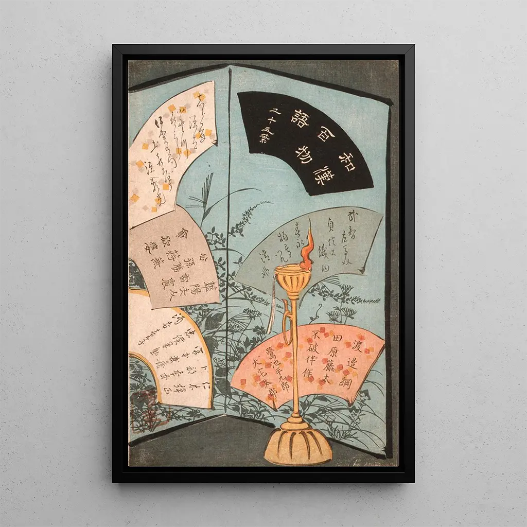 De kunstdruk van de Pagina van de titel van Tsukioka Yoshitoshi roept een wereld op waar schoonheid en melancholie samenkomen. De levendige kleuren en de minutieuze details van dit werk vangen de essentie van Japanse ukiyo-e prenten, waarin elke lijn een verhaal vertelt. De techniek van ukiyo-e, die "beelden van de drijvende wereld" betekent, wordt hier benadrukt, waardoor een sfeer ontstaat die zowel sereen als boeiend is. De delicate motieven en elegante personages dompelen de kijker onder in een poëtische wereld, uitnodigend tot contemplatie en ontsnapping.