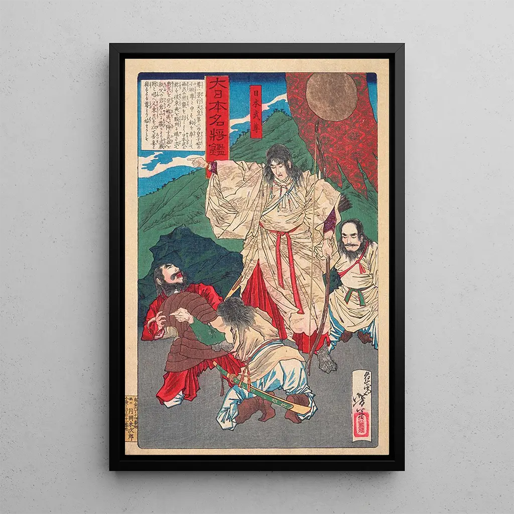 Yamato Takeru no Mikoto avec arc : een legendarische held in volle actie In deze betoverende kunstdruk wordt Yamato Takeru no Mikoto afgebeeld in al zijn glorie, terwijl hij zijn boog vasthoudt met een voelbare vastberadenheid. De levendige kleuren en de minutieuze details van zijn harnas roepen een sfeer van moed en mysterie op. De dynamische compositie trekt de aandacht en benadrukt de beweging van het personage, alsof hij zich voorbereidt op een episch avontuur. Tsukioka Yoshitoshi, meester van de Japanse ukiyo-e, slaagt erin de essentie van deze mythologische held vast te leggen, waarbij een gevechtsscène wordt omgevormd tot een levendig en evocatief kunstwerk. Tsukioka Yoshitoshi : een pionier van de moderne ukiyo-e Tsukioka Yoshitoshi, geboren in 1839, is een van de laatste grote meesters van de ukiyo-e, een stijl van Japanse kunstdruk die bloeide tijdens de Edo-periode. Geïnspireerd door de sociale en politieke onrust van zijn tijd, wist Yoshitoshi traditie en innovatie te combineren, en creëerde hij werken die zowel de schoonheid als de tragedie van het leven weerspiegelen. Zijn werk wordt gekenmerkt door een bijzondere aandacht voor details en een gedurfde toepassing van kleuren, waardoor hij zich onderscheidde onder zijn tijdgenoten. De voorstelling van Yamato Takeru no Mikoto past binnen een context waarin oude legendes worden herontdekt en gevierd, wat het belang van mythologie in de Japanse cultuur onderstreept. Een decoratief kunstwerk met vele voordelen Kiezen voor een kunstdruk van Yamato Takeru no Mikoto met boog betekent kiezen voor een stuk dat elegantie en cultuur toevoegt aan uw interieur. Of het nu in een woonkamer, kantoor of slaapkamer is, deze doek trekt de aandacht en wekt nieuwsgierigheid. De kwaliteit van de afdruk garandeert een trouwheid aan de originele details, zodat u volop kunt genieten van het werk van Yoshitoshi. Met zijn onmiskenbare esthetische aantrekkingskracht wordt deze kunstdruk een echt middelpunt dat uw decoratie verrijkt en tegelijkertijd een fascinerend verhaal vertelt, dat van een legendarische held uit het oude Japan.