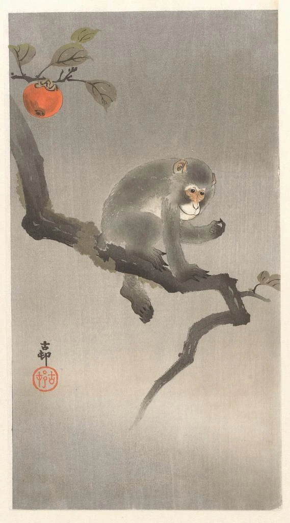 Kunstdruk | Singe dans un plaqueminier - Ohara Koson