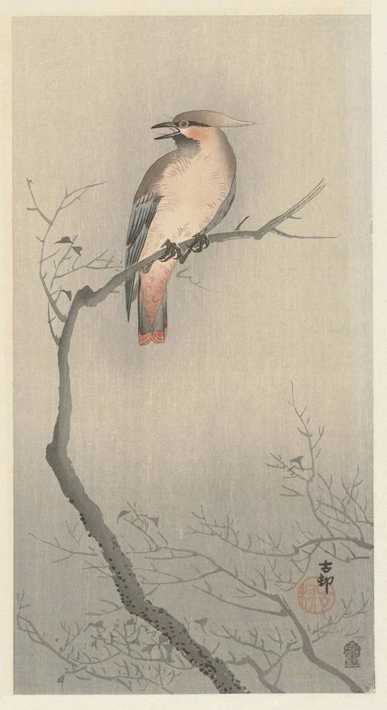 Kunstdruk | Jaseur du Japon sur branche - Ohara Koson