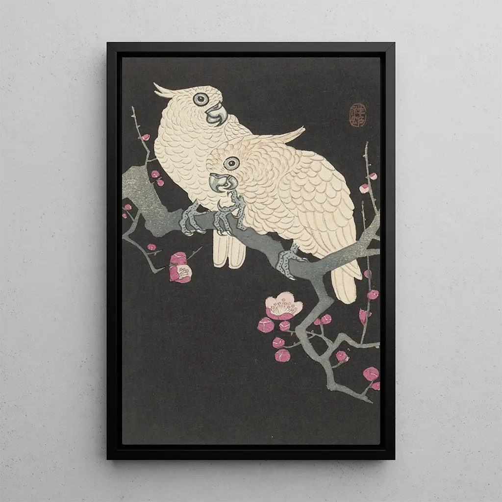 Deux kaketoes en kersenbloesem: een harmonie tussen fauna en flora In de kunstdruk van het werk "Deux cacatoès et fleurs de prunier" dompelt Ohara Koson ons onder in een wereld waar de schoonheid van vogels samengaat met die van bloemen. De kaketoes, met hun schitterende verenkleed, landen voorzichtig tussen de bloeiende takken, waardoor een scène ontstaat die zowel levendig als rustgevend is. De pastelkleuren van de kersenbloesem contrasteren met de levendige tinten van de vogels, terwijl de ukiyo-e-stijl techniek het mogelijk maakt om elk detail met finesse vast te leggen. Dit werk roept een gevoel van vrede en sereniteit op en nodigt uit tot contemplatie van de natuur. Ohara Koson: een kunstenaar met een hart voor de moderne ukiyo-e Ohara Koson, een iconische figuur in de Japanse ukiyo-e, wist traditie en innovatie te combineren aan het begin van de 20e eeuw. Zijn stijl, beïnvloed door de meesters van de ukiyo-e, kenmerkt zich door een bijzondere aandacht voor natuurlijke elementen, vooral vogels en bloemen. Koson speelde een sleutelrol in de internationale verspreiding van de Japanse kunst, waardoor hij de rijkdom van zijn artistieke erfgoed bekend maakte. Zijn werken, vaak doordrenkt met poëzie, getuigen van een tijd waarin kunst en natuur in een harmonieuze eenheid samenkwamen. Een decoratief kunstdruk met vele voordelen De kunstdruk van "Deux cacatoès et fleurs de prunier" is een waardevolle aanvulling op elke interieurdecoratie. Of het nu in een woonkamer, kantoor of slaapkamer is, dit doek brengt een vleugje elegantie en frisheid. De hoge kwaliteit van de afdruk en de trouw aan het originele werk maken het een ideale keuze voor kunstliefhebbers. Door dit werk in uw ruimte te integreren, creëert u een warme en gastvrije sfeer, terwijl u de schoonheid van de natuur en het talent van Ohara Koson viert.