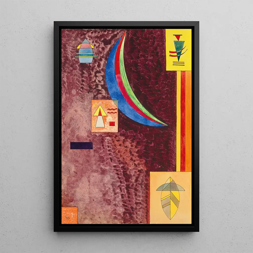In "Aigu" biedt Wassily Kandinsky ons een kunstdruk waarin geometrische vormen samenkomen in een levendige dialoog. De hoekige lijnen en de heldere kleuren verweven zich om een compositie te creëren die zowel dynamisch als evenwichtig is. Het gebruik van contrasterende tinten, zoals felrood en diepzwart, versterkt de intensiteit van de kunstdruk, terwijl de vormen lijken te bewegen en te vibreren op het doek. Dit stuk, doordrenkt met een voelbare energie, nodigt de kijker uit om onder te dompelen in een wereld waar abstractie een unieke zintuiglijke ervaring wordt.