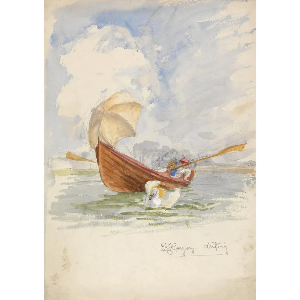 Edward John Gregory, actief aan het einde van de 19e eeuw, is een Britse schilder wiens werk zich richt op thema’s van eenzaamheid en contemplatie. Geïnspireerd door de artistieke beweging van zijn tijd, wist hij elementen van realisme en impressionisme in zijn werken te integreren. À la dérive getuigt van zijn vaardigheid om momenten van menselijke kwetsbaarheid vast te leggen, terwijl hij onderwerpen behandelt die vaak over het hoofd worden gezien. Gregory heeft een blijvende indruk achtergelaten in de kunstwereld door complexe emoties te belichten via aangrijpende composities.