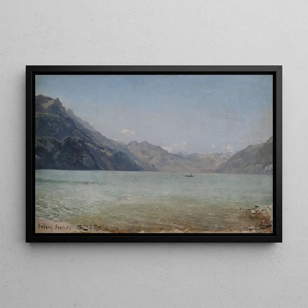 De kunstenaar van "Bij het meer van Brienz" is een vertegenwoordiger van de romantische beweging, een periode waarin de kunst zich richtte op de natuur om diepe emoties uit te drukken. Hoewel zijn naam niet altijd algemeen erkend wordt, getuigt zijn werk van een uitzonderlijke beheersing van alpine landschappen. Geïnspireerd door de grote meesters van zijn tijd, wist hij de majesteit van de bergen en de rust van de meren vast te leggen, en creëerde hij werken die nog steeds resoneren. Dit schilderij is emblematisch voor een tijd waarin kunst en natuur nauw verbonden waren, en een zoektocht naar schoonheid en harmonie weerspiegelden.