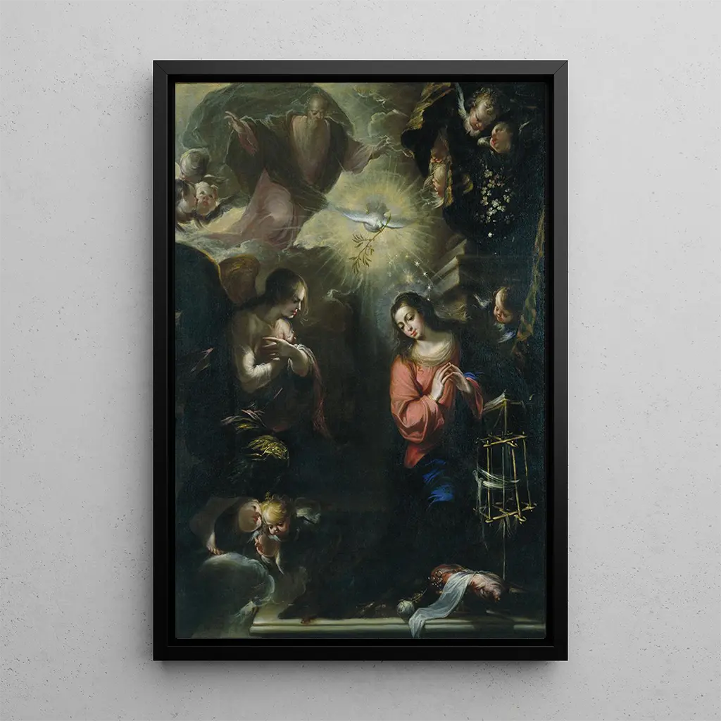 De Annonciatie van Francisco de Solís is een kunstdruk die het heilige moment vastlegt waarop de aartsengel Gabriël aan de Maagd Maria aankondigt dat zij de Zoon van God zal ontvangen. De compositie wordt gekenmerkt door levendige kleuren en een zachte lichtval die de figuren omhult, waardoor een sfeer ontstaat die zowel sereen als mystiek is. De minutieuze details van de plooien en gezichtsuitdrukkingen getuigen van een indrukwekkende technische beheersing. De scène is vol symboliek, zoals de lelie, die de zuiverheid vertegenwoordigt, en het open boek, symbool van het goddelijke woord. Dit kunstwerk nodigt uit tot contemplatie en meditatie over het mysterie van de incarnatie.