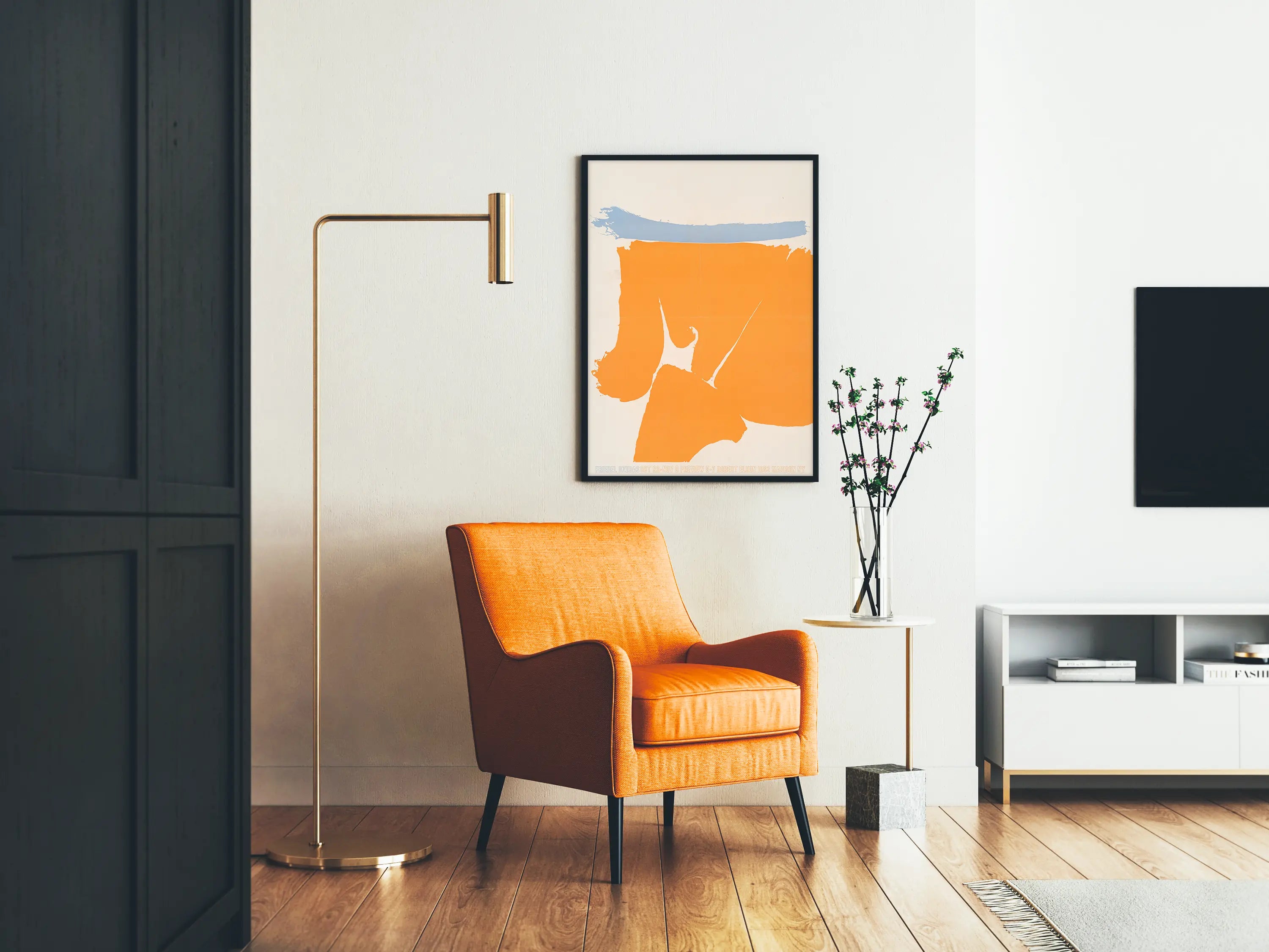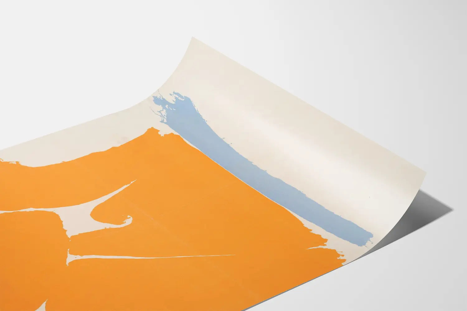 Deze abstracte poster biedt een kleurrijke en eenvoudige compositie, gedomineerd door een grote oranje applicatie op een witte achtergrond, boven een lichtblauwe horizontale band. Het minimalistische grafisch ontwerp en de organische vormen roepen een eigentijdse en rustgevende sfeer op, ideaal voor een moderne wanddecoratie. Deze wandversiering past perfect in een woonruimte, kantoor of slaapkamer, en voegt een toegankelijke en elegante abstracte kunst toe. De poster benadrukt een strakke stijl, zonder visuele overbelasting, voor een harmonieuze en evenwichtige uitstraling die de aandacht trekt. Deze poster richt zich op liefhebbers van abstracte kunst en sober design, die op zoek zijn naar een decoratief stuk dat kleur en vorm brengt zonder overdaad. De keuze van kleuren, met een levendig oranje en een zachte blauw, creëert een interessante contrast, terwijl het binnen een warme en aangename palet blijft. Dit soort wandkunst is een decoratieve oplossing om een ruimte te verfrissen en een creatieve en inspirerende sfeer te geven. Dankzij het verticale formaat kan deze poster zich aanpassen aan diverse muurruimtes, of het nu een lege muur, een gang of een leeshoek betreft. Het geheel vormt een visueel evenwicht tussen vol en leeg, tussen vlakke kleurvlakken en de witte ondergrond. Deze abstracte poster is een idee voor wanddecoratie dat uitnodigt tot contemplatie, terwijl het gemakkelijk in verschillende indelingsstijlen kan worden geïntegreerd. Een perfecte keuze voor wie houdt van eenvoudige maar impactvolle vormen, die grafische kunst en minimalisme combineren. Deze wanddecoratie, gedrukt op hoogwaardig papier, garandeert een goede kleurbestendigheid en duurzaamheid, zodat uw interieur langdurig wordt verfraaid.