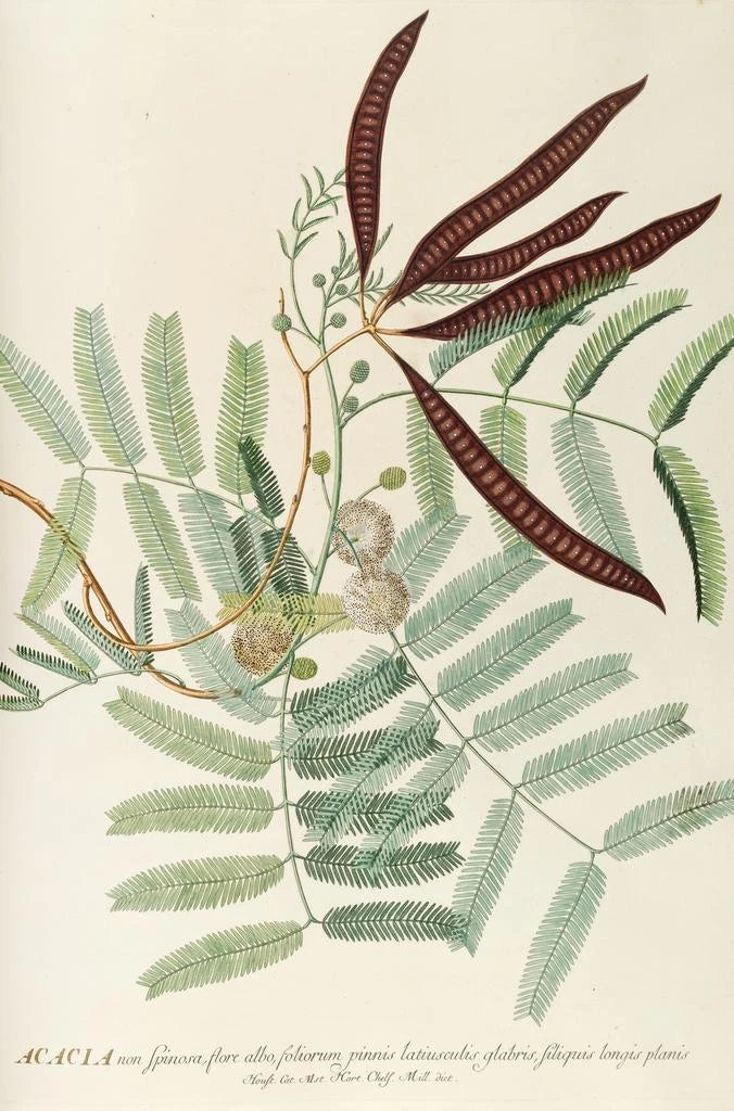 Ehret, actief in de achttiende eeuw, wordt erkend als een van de grootste botanische illustratoren van zijn tijd. Oorspronkelijk uit Duitsland, werd hij beïnvloed door de wetenschappelijke bewegingen van zijn tijd, met als doel kunst en wetenschap te combineren. Zijn carrière bracht hem ertoe te werken voor vooraanstaande persoonlijkheden, onder andere aan het hof van Londen. Zijn werken, waaronder Acacia, getuigen van een periode waarin de studie van planten in volle bloei was, en waarin kunst diende om de botanische diversiteit van de wereld te documenteren. De waarde van Ehret ligt in zijn vermogen om wetenschappelijke precisie en esthetiek te combineren, waardoor zijn kunstdrukken onschatbaar zijn.