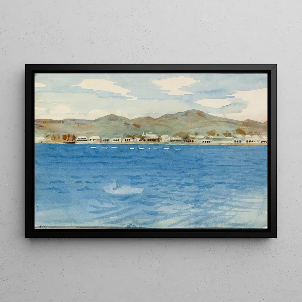 Açores : een ontsnapping naar betoverende landschappen De kunstdruk Açores van Abbott Handerson Thayer brengt ons naar het hart van een idyllisch landschap, waar de natuur in al haar pracht bloeit. De levendige tinten blauw en groen mengen harmonieus, en roepen de sereniteit op van de hemel en het water. De olieverftechniek op doek stelt de kunstenaar in staat om het licht bijna magisch vast te leggen, waardoor een dromerige sfeer ontstaat. De organische vormen van de heuvels en bomen, evenals de fijnheid van de wolken, nodigen uit tot diepe contemplatie, alsof elke penseelstreek een streling op het doek is. Abbott Handerson Thayer: een pionier van het Amerikaanse landschap Abbott Handerson Thayer wordt erkend als een van de belangrijkste kunstenaars van de Amerikaanse impressionistische beweging aan het eind van de 19e eeuw. Geboren in 1849, werd hij beïnvloed door de schoonheid van de natuur en de landschappen uit zijn jeugd in New Hampshire. Thayer was ook een fervent voorstander van plein air schilderen, wat hem in staat stelde natuurlijke scènes met zeldzame authenticiteit vast te leggen. Zijn werken, vaak doordrenkt met romantische gevoeligheid, getuigen van zijn toewijding aan een getrouwe weergave van de natuur. Via de kunstdruk Açores ontdekken we het belang van zijn artistieke nalatenschap, die nog steeds kunstenaars en kunstliefhebbers inspireert. Een decoratief stuk met vele voordelen De kunstdruk van het schilderij Açores is een ideale keuze om je interieur te verfraaien, of het nu een woonkamer, kantoor of slaapkamer is. De afdrukkwaliteit garandeert een opmerkelijke trouw aan de kleuren en details van het originele werk, en brengt een vleugje elegantie en sereniteit in je ruimte. De esthetische aantrekkingskracht van deze doek ligt in haar vermogen om emoties op te roepen en een rustgevende sfeer te creëren. Door deze kunstdruk in je decoratie te integreren, bied je je omgeving een uitnodiging tot contemplatie en ontsnapping, waardoor elk bliksem een moment van schoonheid wordt.
