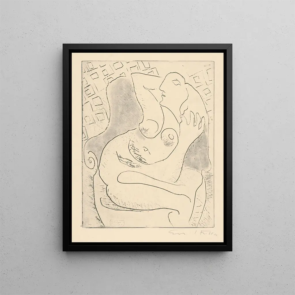 Reproductie Acte - Emil Filla – Boeiende introductie In het uitgestrekte panorama van de moderne kunst onderscheiden sommige werken zich door hun vermogen om de tijd te overstijgen en de essentie van de mensheid vast te leggen. "Acte" van Emil Filla is een van die creaties die, door zijn emotionele diepgang en stilistische durf, de kijker uitnodigt tot introspectieve reflectie. Dit werk, dat universele thema's zoals kwetsbaarheid en kracht oproept, dompelt ons onder in een wereld waar vorm en kleur met intensiteit dialogeren. De kunstdruk van "Acte" stelt u in staat om de technische meesterschap van de kunstenaar te waarderen, terwijl het een venster biedt op de esthetische en filosofische bezorgdheden van zijn tijd. Stijl en uniekheid van het werk Het werk "Acte" wordt gekenmerkt door een innovatieve benadering van het menselijk lichaam, waarbij Filla abstractie en figuratie weet te combineren. De dynamische lijnen en vloeiende vormen roepen een voelbare sensualiteit op, terwijl een zekere emotionele afstand wordt behouden. Het kleurenpalet, gedurfd en contrastrijk, speelt een essentiële rol in de visuele vertelling, waarbij elke tint een laag betekenis toevoegt aan het geheel. Daarnaast weerspiegelt de compositie van het werk, zowel in balans als in disbalans, de interne spanningen die het onderwerp kenmerken. Deze dualiteit tussen schoonheid en angst, tussen licht en schaduw, geeft "Acte" een uniekheid die niemand onverschillig laat. De kunstenaar en zijn invloed Emil Filla, iconische figuur van het Tsjechische kubisme, wist zich te onderscheiden op het Europese artistieke toneel dankzij zijn vernieuwende aanpak en zijn vermogen om diverse invloeden te integreren in zijn werk. Opgeleid in Praag en omringd door gerenommeerde kunstenaars, ontwikkelde Filla een eigen stijl die tussen abstractie en figuratieve voorstelling balanceert. Zijn werk wordt gekenmerkt door een voortdurende verkenning van menselijke emoties, een terugkerend thema dat zijn hoogtepunt vindt in "Acte". De invloed van Filla beperkt zich niet tot zijn tijd; ze weerklinkt nog steeds in het werk van vele hedendaagse kunstenaars die de menselijke conditie willen onderzoeken door de lens van de moderniteit. Een uitzonderlijke wanddecoratie ondertekend door Artem Legrand Kies voor de kunstdruk van "Acte" van