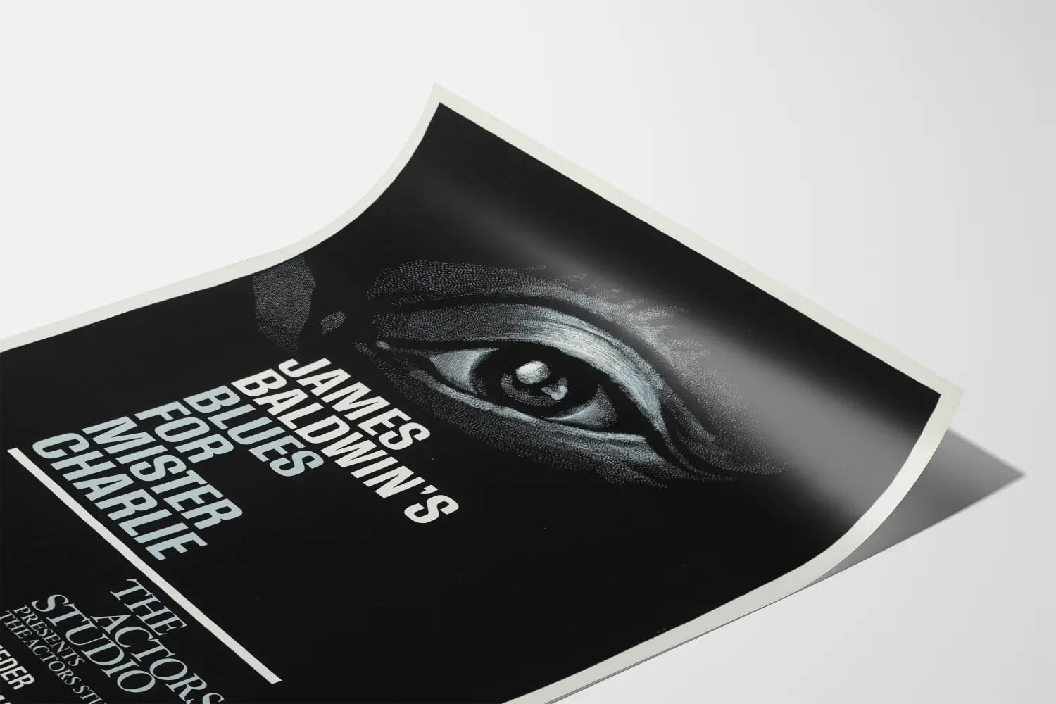 Deze poster « Blues for Mister Charlie » is een iconisch stuk muurdecoratie, perfect voor liefhebbers van theater en elegante grafische ontwerpen. Het beeld toont een gestileerd oog in witte patronen op een zwarte achtergrond, waardoor een opvallend contrast ontstaat dat direct de aandacht trekt. De grafische compositie is strak en modern, met typografie in wit en lichtgrijs en scherpe lijnen, waardoor het een kunstzinnig en minimalistisch affiche is.