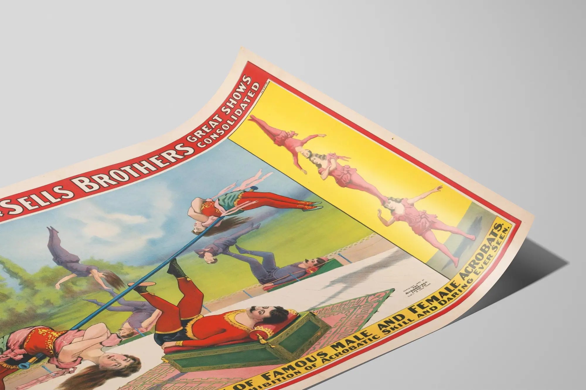 Affiche vintage Forepaugh & Sells Brothers - Famille d'acrobates Carl Damann