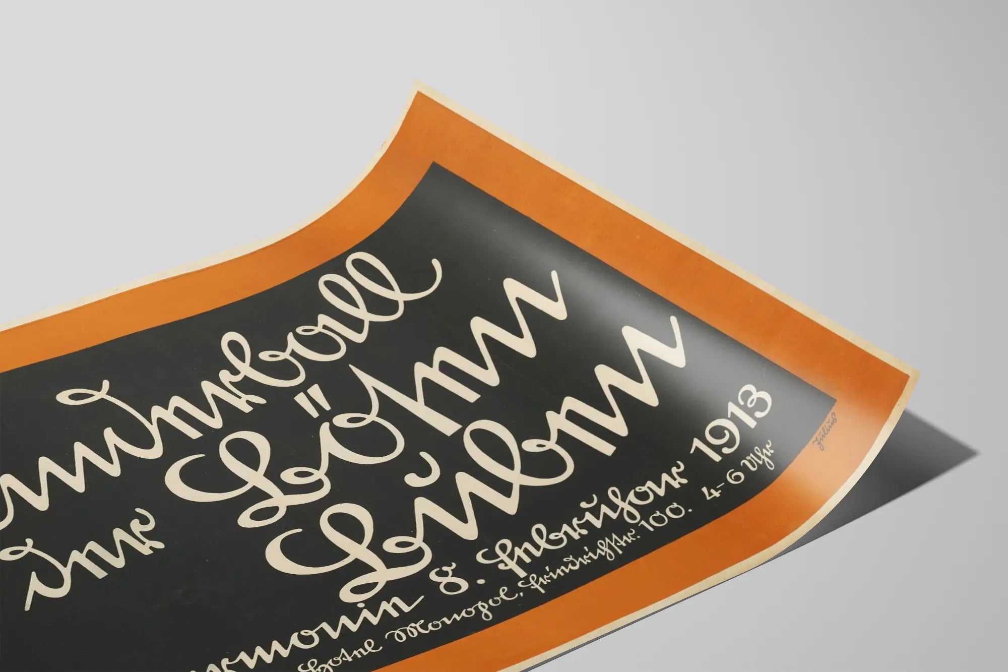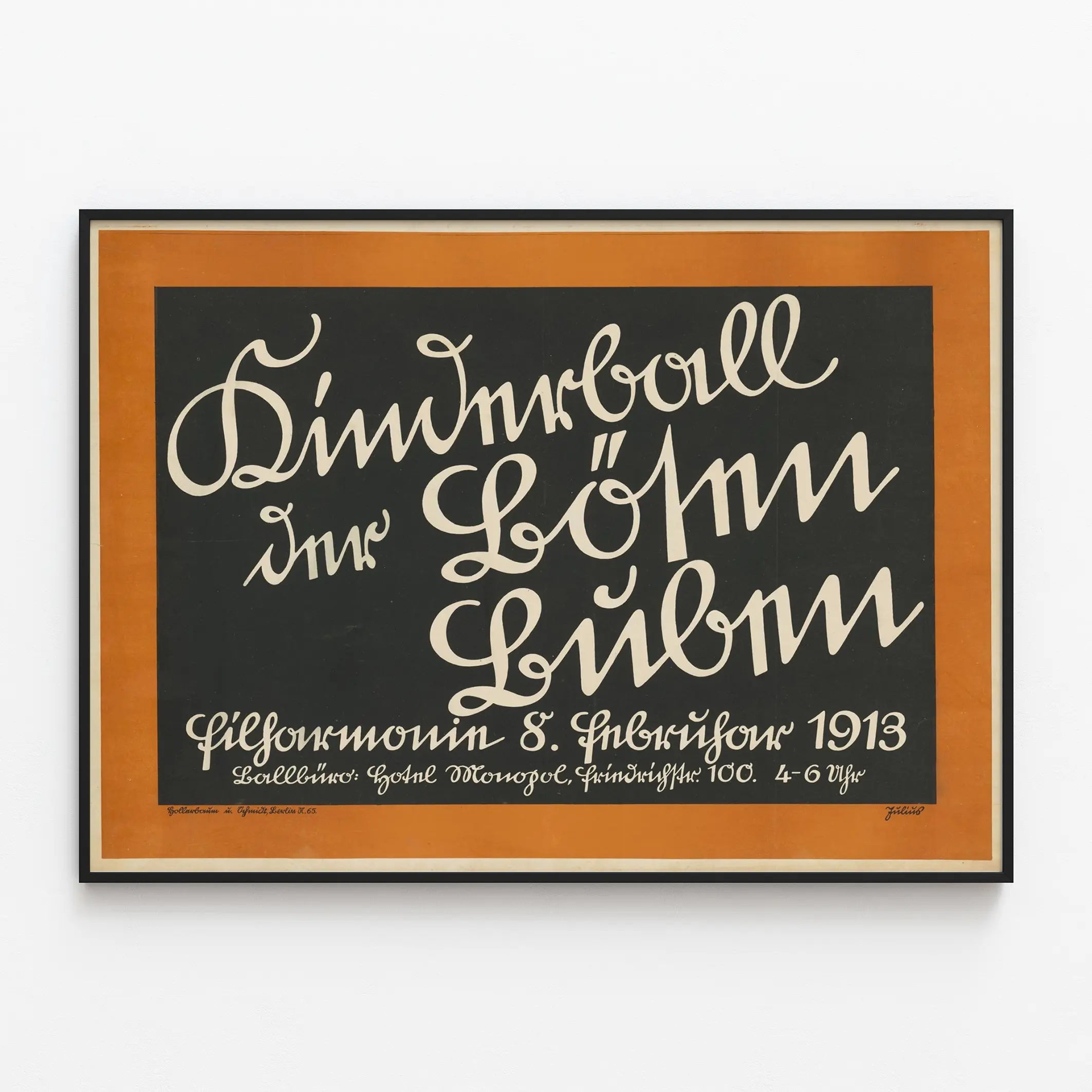Cette affiche vintage « Kinderball Der Bosen Buben » est une pièce unique pour toute décoration murale à l’esprit rétro et graphique. Datée de 1913, cette affiche typographique en noir et blanc sur fond noir, encadrée d’une bordure ocre, apporte un style marqué et authentique à votre intérieur. Son design se compose d’une écriture cursive élégante et originale, qui fait de cette affiche un élément décoratif très recherché pour les amateurs d’art graphique et d’affiches historiques. Elle convient parfaitement pour une décoration murale dans un salon, une bibliothèque ou un espace créatif, apportant une esthétique intemporelle et un charme ancien. Cette affiche décorative représente un véritable témoignage du design typographique allemand du début du 20ème siècle, alliant sobriété des couleurs et dynamique des formes calligraphiques. Que ce soit pour orner un mur blanc moderne ou accompagner une ambiance vintage, cette affiche s’intègre facilement à divers styles d’intérieur. Idéale en poster encadré, elle révèle toute la richesse du graphisme d’époque et contribue à créer une ambiance unique et raffinée dans une pièce. En choisissant cette décoration murale, vous optez pour un objet déco chargé d’histoire qui attire le regard par son originalité et sa composition soignée.