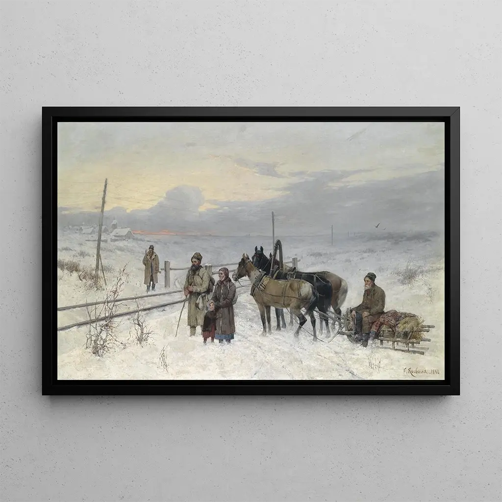 En attendant le train : une pause dans le temps La reproduction d'En attendant le train de Franz Roubaud capture un moment de calme suspendu, où les personnages semblent figés dans l'attente. La scène, riche en détails, évoque une atmosphère nostalgique, où le train, symbole de voyage et d'évasion, se fait désirer. Les couleurs chaudes et terreuses, mêlées à des touches de lumière, créent une ambiance à la fois intime et dynamique. Roubaud excelle dans la représentation des émotions humaines, et cette œuvre ne fait pas exception, invitant le spectateur à ressentir l'impatience et l'espoir des voyageurs. Franz Roubaud : un témoin de son époque Franz Roubaud, peintre russe du XIXe siècle, est surtout connu pour ses grandes fresques et ses scènes historiques. Son style, influencé par le réalisme et le romantisme, reflète les bouleversements de son temps, notamment à travers des représentations de la vie quotidienne et des événements marquants. Roubaud a su capturer l'essence de la société russe, et son œuvre En attendant le train témoigne de son habileté à traduire des moments simples en récits visuels poignants. Son travail est une fenêtre sur une époque où le train symbolisait le progrès et l'espoir d'un avenir meilleur. Une acquisition décorative aux multiples atouts La reproduction d'En attendant le train est un choix décoratif qui saura enrichir votre espace de vie, que ce soit dans un salon, un bureau ou une salle d'attente. Son ambiance nostalgique et chaleureuse apporte une touche d'élégance et de réflexion à votre décoration intérieure. La qualité de l'impression assure une fidélité remarquable aux détails de l'œuvre originale, permettant de profiter pleinement de son attrait esthétique. En intégrant cette toile dans votre décor, vous offrez à votre environnement une invitation à la contemplation et à l'évasion, tout en rendant hommage au talent de Franz Roubaud.