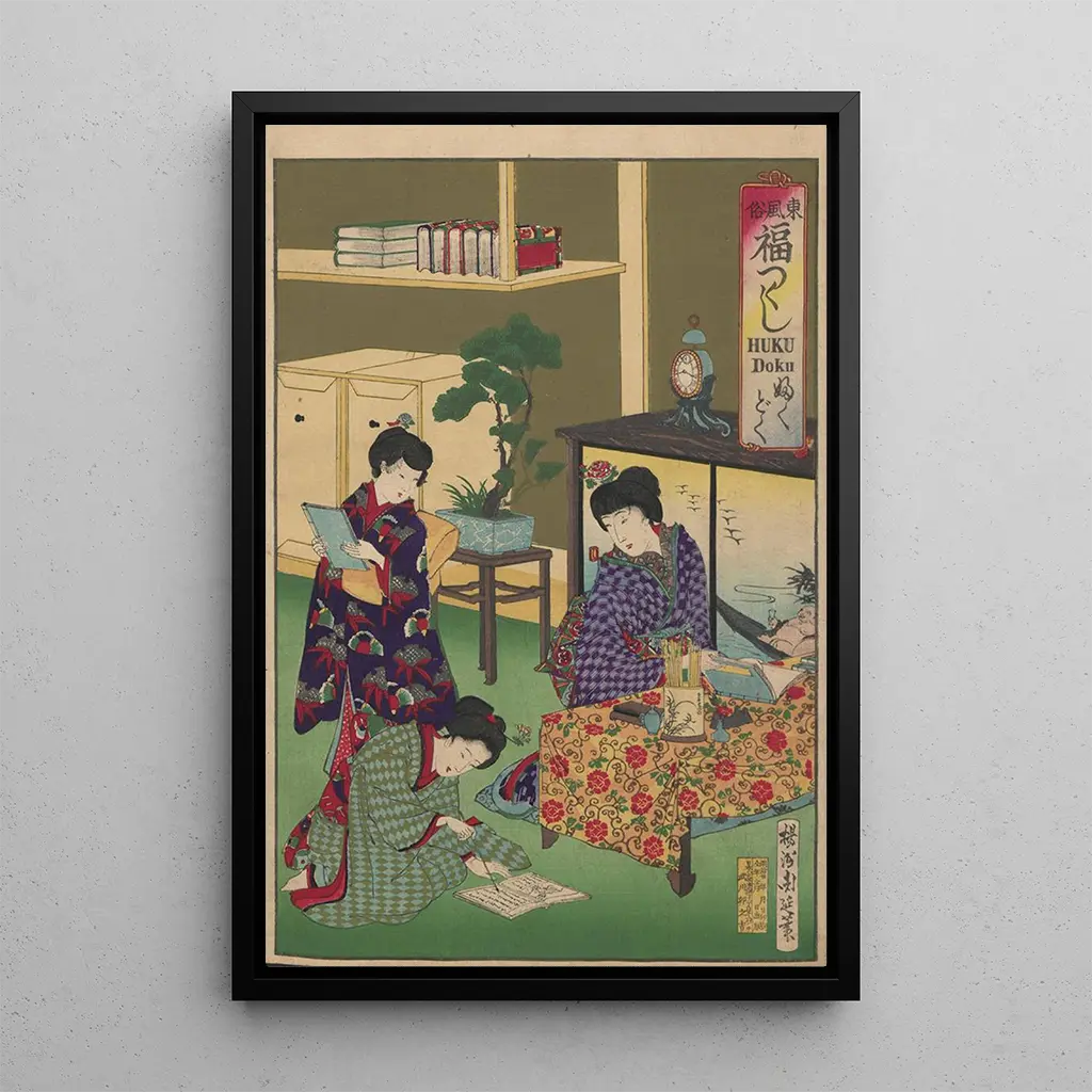 L'Album de Nishikie Pl11 : een ode aan de vergankelijke schoonheid De kunstdruk "L'Album de Nishikie Pl11" van Toyohara Chikanobu is een ware viering van de vluchtige schoonheid van de wereld. Deze reproductie onderscheidt zich door zijn levendige kleuren en minutieuze details, die de essentie van het dagelijks leven in Japan tijdens de Edo-periode vastleggen. De personages, gekleed in rijk versierde kimono's, lijken tot leven te komen op het doek, terwijl de bloemmotieven en landschappen op de achtergrond een poëtische dimensie aan de scène toevoegen. De techniek van de houtsnede op papier, kenmerkend voor Chikanobu, zorgt voor diepte en helderheid die het kunstwerk bijzonder boeiend maken. Elke blik op deze kunstdruk nodigt uit tot een contemplatie van de subtiliteiten van de Japanse cultuur. Toyohara Chikanobu : een meester van de Japanse houtsnede Toyohara Chikanobu, actief tijdens de Meiji-periode, wordt erkend als een van de grootste kunstenaars van de Japanse houtsnede. Geïnspireerd door de sociale en culturele veranderingen van zijn tijd, wist hij traditie en moderniteit te combineren in zijn werken. Chikanobu werd opgeleid in het atelier van zijn voorganger, Kuniyoshi, en ontwikkelde snel zijn eigen stijl, gekenmerkt door dynamische composities en heldere kleuren. Zijn werken, vaak geïnspireerd door historische thema's en volksverhalen, getuigen van de rijkdom van de Japanse cultuur. Door de kunst van de houtsnede opnieuw te ontdekken, heeft Chikanobu een blijvende erfenis achtergelaten die kunstenaars van nu blijft inspireren. Een decoratieve aanwinst met vele voordelen De reproductie van "L'Album de Nishikie Pl11" is een ideale keuze om je interieur te verfraaien, of het nu in een woonkamer, kantoor of slaapkamer is. De afdrukkwaliteit garandeert een opmerkelijke fideliteit aan de originele details, waardoor je de schoonheid van het kunstwerk volledig kunt waarderen. Door dit schilderij in je inrichting te integreren, voeg je een vleugje elegantie en Japanse cultuur toe aan je ruimte. De esthetische aantrekkingskracht, versterkt door levendige kleuren en verfijnde motieven, maakt het een decoratief element dat bewondering en nieuwsgierigheid wekt bij je gasten. Deze doek is veel meer dan een eenvoudige reproductie; het is een uitnodiging om de kunst en geschiedenis van Japan te verkennen.