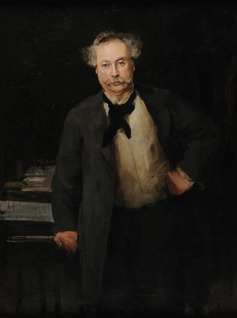 Alfred Philippe Roll, wiens artistieke parcours wordt gekenmerkt door een diepe gevoeligheid, heeft zich weten te vestigen als een van de meest vooraanstaande portretschilders van zijn tijd. Als leerling van grote meesters ontwikkelde hij een stijl die traditie en moderniteit combineert, waarbij hij elementen van het realisme integreert en toch een zekere poëzie in zijn werken behoudt. Zijn vermogen om de essentie van zijn modellen te vangen, stelde hem in staat te werken met invloedrijke persoonlijkheden uit zijn tijd, waardoor hij een belangrijke speler werd in de artistieke wereld van de 19e eeuw. De ontmoeting tussen Roll en Dumas fils is emblematisch voor die periode waarin literatuur en beeldende kunsten zich verweven.