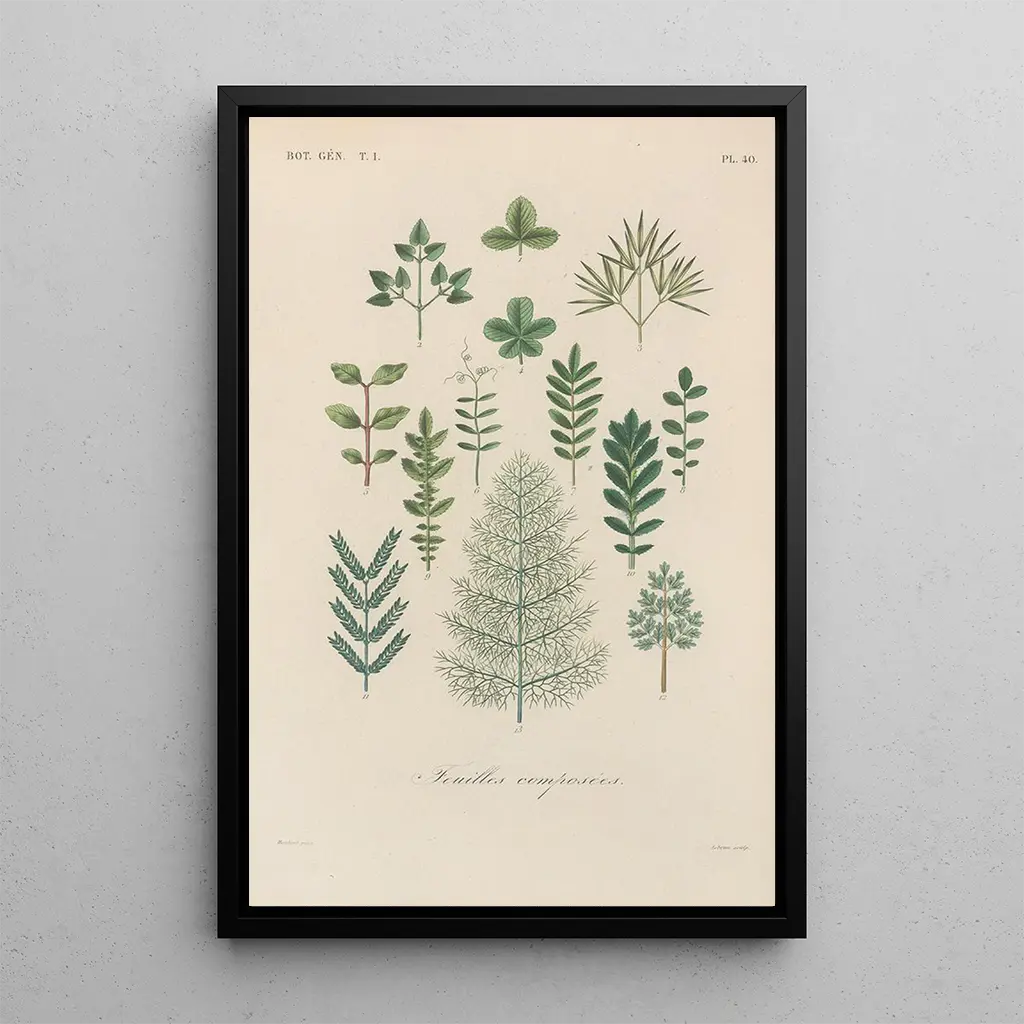 De kunstdruk van het tableau Traité de botanique générale Pl041 brengt ons in een wereld waar elke plant wordt gevierd om haar uniekheid. De delicate nuances en de precieze details van de illustraties eren de rijkdom van de flora. De gebruikte techniek, die aquarel en tekening combineert, geeft een lichte uitstraling aan het geheel, terwijl het de complexiteit van natuurlijke vormen benadrukt. De sfeer die uit dit werk straalt, is zowel levendig als sereen, en nodigt uit tot een aandachtige contemplatie van de wonderen die de natuur ons biedt.