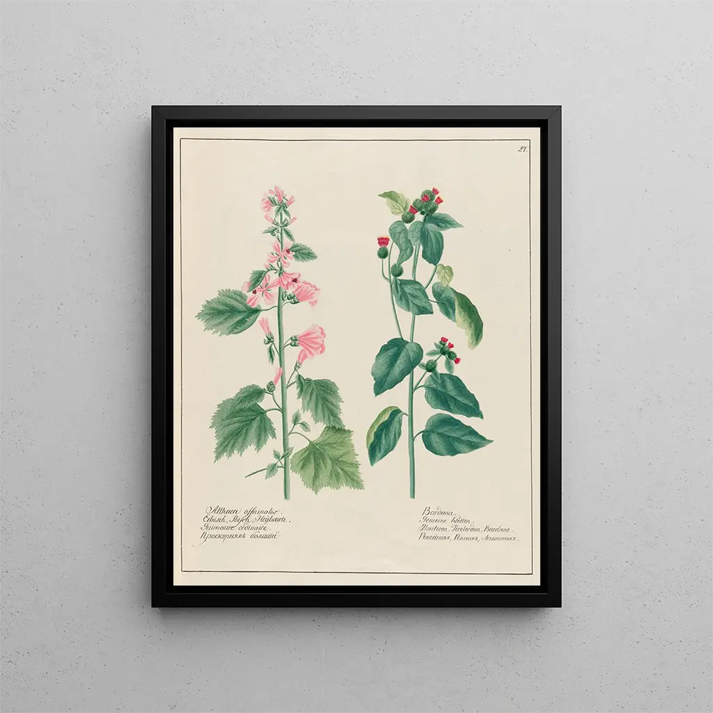 Petr Martynovich Gofman, Russische kunstenaar uit de 19e eeuw, staat bekend om zijn botanische kunstdrukken die wetenschappelijke precisie en esthetische schoonheid combineren. In 'Althaea officinalis en Bardana' biedt hij een delicate voorstelling van deze medicinale planten, waarbij hij hun vorm en textuur met grote aandacht voor detail benadrukt. Gofman slaagt erin de gratie en kwetsbaarheid van de natuur vast te leggen, terwijl hij ook informatie geeft over de eigenschappen van deze planten. Zijn stijl, doordrenkt met realisme, weerspiegelt een groeiende interesse in botanica in zijn tijd, terwijl het tegelijkertijd toegankelijk en boeiend blijft voor de moderne kijker. Vandaag de dag vinden deze botanische kunstdrukken hun plaats in eigentijdse interieurs, waarbij ze de schoonheid van de natuur vieren en een vleugje kennis toevoegen. Een kunstdruk van dit werk op Artem Legrand zou een prachtige manier zijn om een vleugje natuur en wetenschap aan uw inrichting toe te voegen.