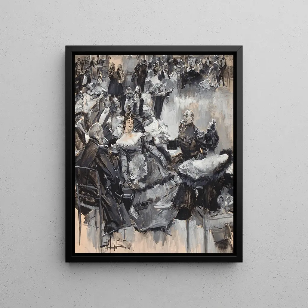 Reproductie Bal van de ambassade in Wenen - Albert Beck Wenzell – Boeiende introductie Het schilderij "Bal van de ambassade in Wenen" van Albert Beck Wenzell is een kunstwerk dat de eenvoudige handeling van schilderen overstijgt om de essentie van een tijdperk vast te leggen. In deze levendige scène dompelt de kunstenaar ons onder in de bruisende sfeer van een bal, een sociale gebeurtenis waar schoonheid, muziek en beweging harmonieus samenkomen. Het doek, emblematisch voor het einde van de 19e eeuw, onthult een feestelijke atmosfeer doordrenkt van verfijning en elegantie, waarin elk detail een verhaal lijkt te vertellen. De personages, gekleed in historische kostuums, komen tot leven onder de sprankelende lichten en nodigen de kijker uit om zich onder te dompelen in de elegantie van deze Weners feestavond. Stijl en uniekheid van het werk De technische meesterschap van Albert Beck Wenzell komt volledig tot uiting in "Bal van de ambassade in Wenen". De kunstenaar gebruikt een rijke en levendige kleurenpalet, van gouden tinten tot diepe nuances van blauw en rood, om een sfeer te creëren die zowel feestelijk als intiem is. De zorgvuldig geregisseerde lichtspelingen brengen de gezichten en kleding van de gasten tot leven, bijna tastbaar. Elk personage wordt met grote zorg weergegeven, met aandacht voor de texturen van de stoffen en de reflecties van de accessoires. Deze aandacht voor detail, gecombineerd met een dynamische compositie, laat de beweging van de dansen en de voelbare opwinding van het feest ervaren. Wenzell slaagt er zo in niet alleen een scène vast te leggen, maar ook de geest van een tijdperk, waarin de bal de spiegel was van de gebruiken en de aristocratische cultuur. De kunstenaar en zijn invloed Albert Beck Wenzell, Amerikaanse schilder uit het begin van de 20e eeuw, staat bekend om zijn vermogen om sociale scènes met ongeëvenaarde delicatesse en precisie weer te geven. Geïnspireerd door de impressionistische beweging, weet hij een sfeer van lichtheid en vloeiendheid in zijn werken te brengen. Wenzell heeft de gelegenheid gehad om door Europa te reizen, wat zijn artistieke visie heeft verrijkt en hem in staat stelde zich te laten beïnvloeden door Europese invloeden, met name Oostenrijkse en Franse. Zijn werk, vaak gericht op alledaagse thema's en sociale evenementen, toont een fascinatie voor menselijke interactie en sociale rituelen. "Bal van de ambassade in Wenen" is zonder twijfel een van zijn meest iconische werken, dat getuigt van zijn talent om vluchtige momenten te vereeuwigen in een stijl die zowel realistisch als poëtisch is. Een uitzonderlijke muurschildering ondertekend door Artem Legrand De kunstdruk Bal van de ambassade in Wenen - Albert Beck Wenzell is veel meer dan een eenvoudig kunstwerk; het is een uitnodiging om onder te dompelen in een wereld van verfijning en schoonheid. Ondertekend door Artem Legrand, presenteert dit stuk zich als een muurdecoratie
