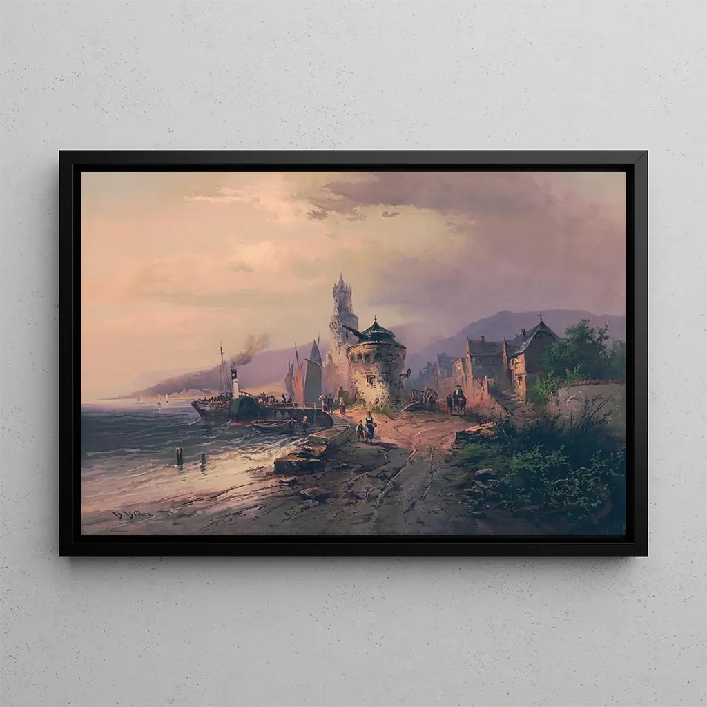 Andernach aan de Rijn: een venster op het verleden De kunstdruk van Andernach aan de Rijn, vervaardigd door Heinrich Hiller, brengt ons naar het hart van een historisch landschap waar de rivier majestueus kronkelt. De zachte tinten van het water vermengen zich met de reflecties van oude gebouwen, waardoor een rustige en nostalgische sfeer ontstaat. De techniek van Hiller, die realisme en romantiek combineert, laat toe de ziel van deze Duitse stad te voelen. Elk detail, van de zeilen van de boten tot de bomen langs de rivier, wordt zorgvuldig weergegeven, waardoor de kijker wordt uitgenodigd om dit schilderij als een levendige scène te verkennen. Dit werk is een ware viering van de harmonie tussen mens en natuur. Heinrich Hiller: een kunstenaar in dienst van het landschap Heinrich Hiller, actief in de 19e eeuw, is een Duitse landschapsschilder wiens werken een diep respect voor de natuur en het architecturale erfgoed weerspiegelen. Geïnspireerd door de romantische beweging, wist Hiller de essentie van de plaatsen die hij schilderde vast te leggen, vooral de landschappen langs de Rijn. Zijn werk wordt gekenmerkt door een bijzondere aandacht voor details en een subtiele toepassing van licht, wat hem in staat stelde unieke sferen te creëren. Hoewel minder bekend dan sommige van zijn tijdgenoten, heeft Hiller bijgedragen aan de evolutie van het romantische landschap in Duitsland, en zijn kunstdruk van Andernach aan de Rijn blijft een getuigenis van zijn talent. Een decoratief stuk met vele voordelen De kunstdruk van Andernach aan de Rijn is een waardevolle aanvulling op elke interieurdecoratie, of het nu gaat om een woonkamer, kantoor of slaapkamer. De afdrukkwaliteit garandeert een uitzonderlijke fideliteit aan de nuances en details van het originele werk, en brengt een vleugje elegantie in uw ruimte. Door deze doek in uw inrichting te integreren, creëert u een boeiend middelpunt dat zowel geschiedenis als natuurlijke schoonheid oproept. Dit werk verfraait niet alleen uw interieur, maar nodigt ook uit tot reflectie en ontsnapping, waardoor uw dagelijks leven wordt verrijkt met een artistieke en culturele dimensie.