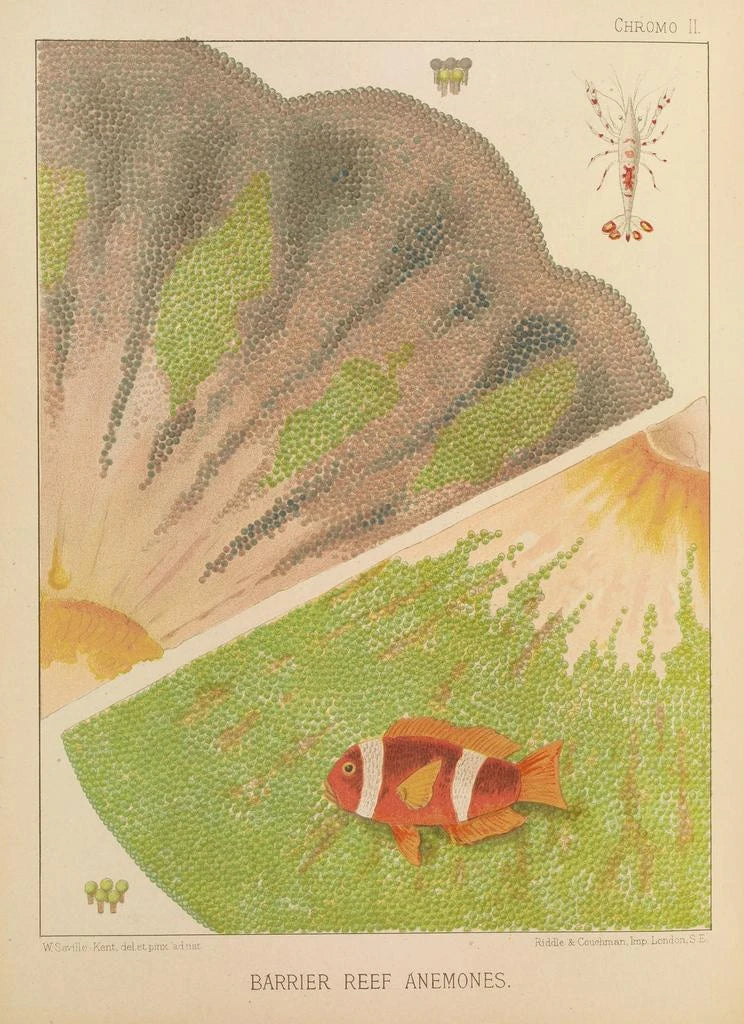 Kunstdruk | Anemonen van het koraalrif II - William Saville-Kent