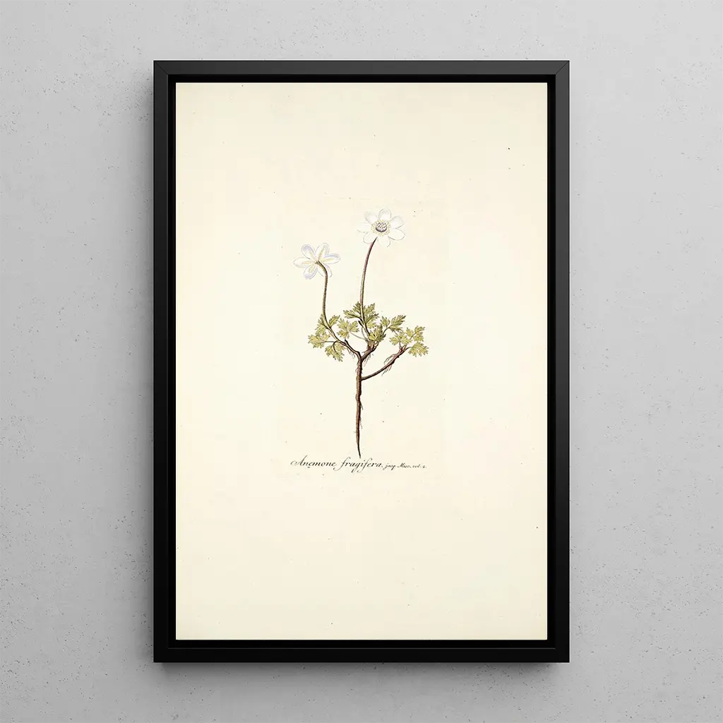 "Anemone fragifera" van Nikolaus Joseph Freiherr von Jacquin is een kunstdruk die de vergankelijke schoonheid van bloemen vastlegt. Met zijn delicate bloemblaadjes en pastelkleuren roept dit schilderij de fragiele en gracieuze aard van de natuur op. De compositie is zorgvuldig in balans gebracht, waarbij elk detail met opmerkelijke precisie wordt benadrukt. De techniek van de kunstenaar, die aquarel en tekening combineert, creëert een zachte en dromerige sfeer die uitnodigt tot rustige contemplatie. Elk element van het doek lijkt te dansen met het licht, en onthult de magie van bloemen in hun natuurlijke habitat.