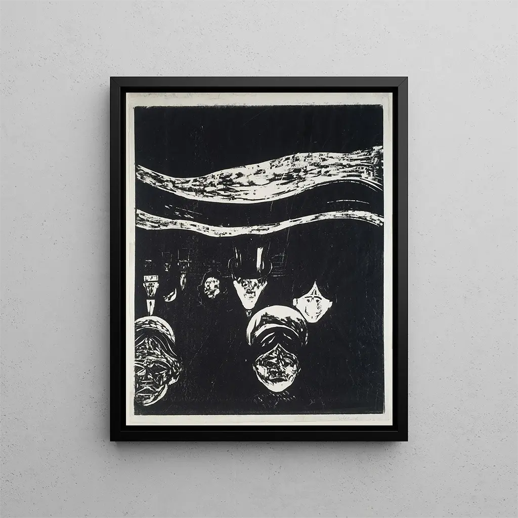 L'œuvre "Angst" van Edvard Munch belichaamt een indringende verkenning van de menselijke emotionele tumulten. Door dit doek slaagt de Noorse kunstenaar erin de essentie van angst vast te leggen, een terugkerend thema in zijn werk. Dit stuk, gemaakt aan het einde van de 19e eeuw, onderscheidt zich door zijn vermogen om universele gevoelens op te roepen, waardoor de existentiële angst die elk individu bezielt, weerklinkt. Bij het bekijken van deze kunstdruk wordt de kijker uitgenodigd om onder te dompelen in een wereld waar emoties tastbaar zijn, waar de kwetsbaarheid van de menselijke ziel met een ontzagwekkende intensiteit wordt onthuld.