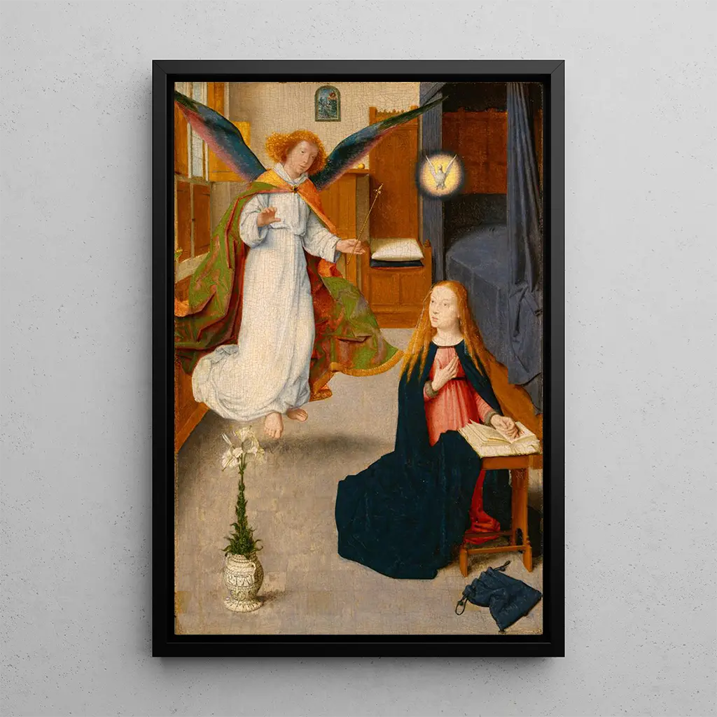Dans "L'Annonciation", Gerard David capture la rencontre entre l'archange Gabriel et la Vierge Marie, un instant chargé d'émotion et de spiritualité. La composition harmonieuse met en avant les figures centrales, entourées d'un décor riche et symbolique. Les couleurs vives et les détails minutieux, typiques de la technique de la peinture à l'huile, créent une atmosphère à la fois sereine et dynamique. La lumière douce qui baigne la scène accentue la dimension sacrée de cet événement, invitant le spectateur à ressentir la profondeur de cette annonce divine.