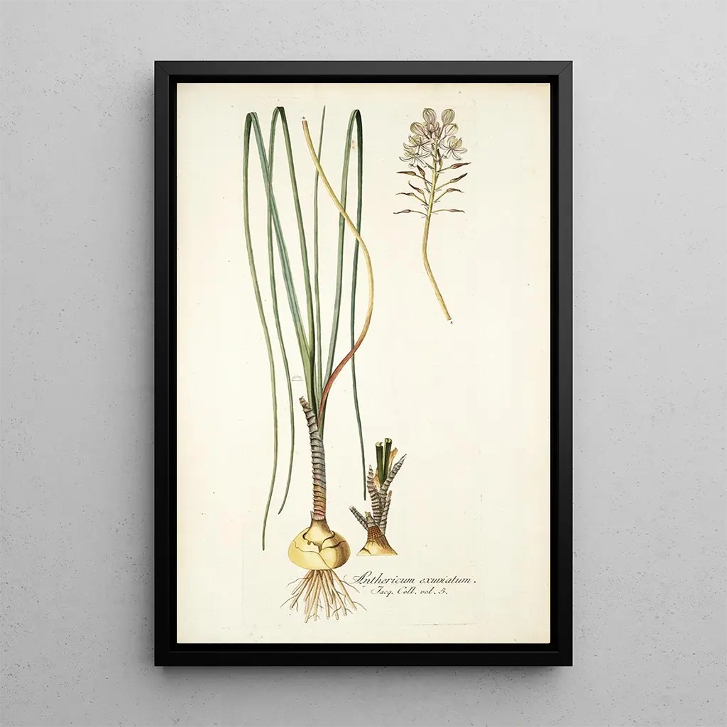 Nikolaus Joseph Freiherr von Jacquin, geboren in 1727, is een iconische figuur in de botanica van de 18e eeuw. Als botanist en kunstenaar wist hij precisie en artistieke gevoeligheid te combineren in zijn illustraties. Geïnspireerd door de Verlichtingsideeën, wijdde Jacquin zijn leven aan de studie van planten en werd hij directeur van de botanische tuin in Wenen. Zijn kunstwerken, waaronder Anthericum exuviatum, zijn niet alleen nauwkeurige representaties van soorten, maar ook getuigenissen van zijn bewondering voor de natuur. Zijn nalatenschap leeft voort in zijn illustraties, die nog steeds botanici en kunstliefhebbers inspireren.