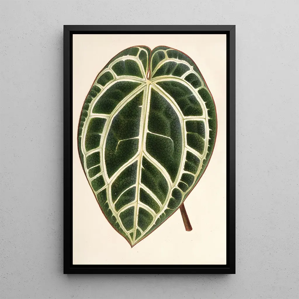 Anthurium crystallinum : een dans van bladeren en licht L'Anthurium crystallinum, avec ses grandes feuilles en forme de cœur, évoque une danse délicate entre la lumière et l'ombre. Les veinures blanches qui parcourent la surface des feuilles créent un contraste saisissant avec le vert profond, offrant une atmosphère à la fois apaisante et dynamique. Cette plante tropicale, souvent cultivée pour sa beauté ornementale, attire le regard par son élégance naturelle. La texture veloutée des feuilles ajoute une dimension tactile, rendant la reproduction de ce tableau vivant particulièrement captivante. Chaque détail, des nuances de couleur aux formes organiques, invite à une contemplation prolongée, comme si la nature elle-même se révélait dans toute sa splendeur. Charles Antoine Lemaire : un pionnier de l'horticulture moderne Charles Antoine Lemaire, botanist et horticulteur du XIXe siècle, a joué un rôle essentiel dans la classification et la diffusion des plantes exotiques. Son travail a permis de mieux comprendre la diversité des espèces végétales, notamment celles provenant des régions tropicales. Lemaire a voyagé à travers le monde, collectant des spécimens et partageant ses découvertes avec la communauté scientifique. Son influence se ressent encore aujourd'hui, car il a contribué à populariser des plantes comme l'Anthurium, qui sont devenues des incontournables dans les jardins et les intérieurs. À travers ses écrits et ses illustrations, il a laissé un héritage durable qui continue d'inspirer les passionnés de botanique. Une acquisition décorative aux multiples atouts La reproduction de l'Anthurium crystallinum est une pièce décorative qui s'intègre harmonieusement dans divers espaces, que ce soit dans un salon, un bureau ou une chambre. Sa qualité de reproduction garantit une fidélité aux couleurs et aux détails de l'œuvre originale, permettant d'apporter une touche de nature à votre intérieur. L'attrait esthétique de ce tableau réside dans sa capacité à évoquer une ambiance tropicale, tout en restant accessible et élégante. En choisissant cette toile, vous optez pour une décoration qui ne se contente pas d'embellir, mais qui raconte aussi une histoire, celle d'une plante fascinante et de son créateur visionnaire.