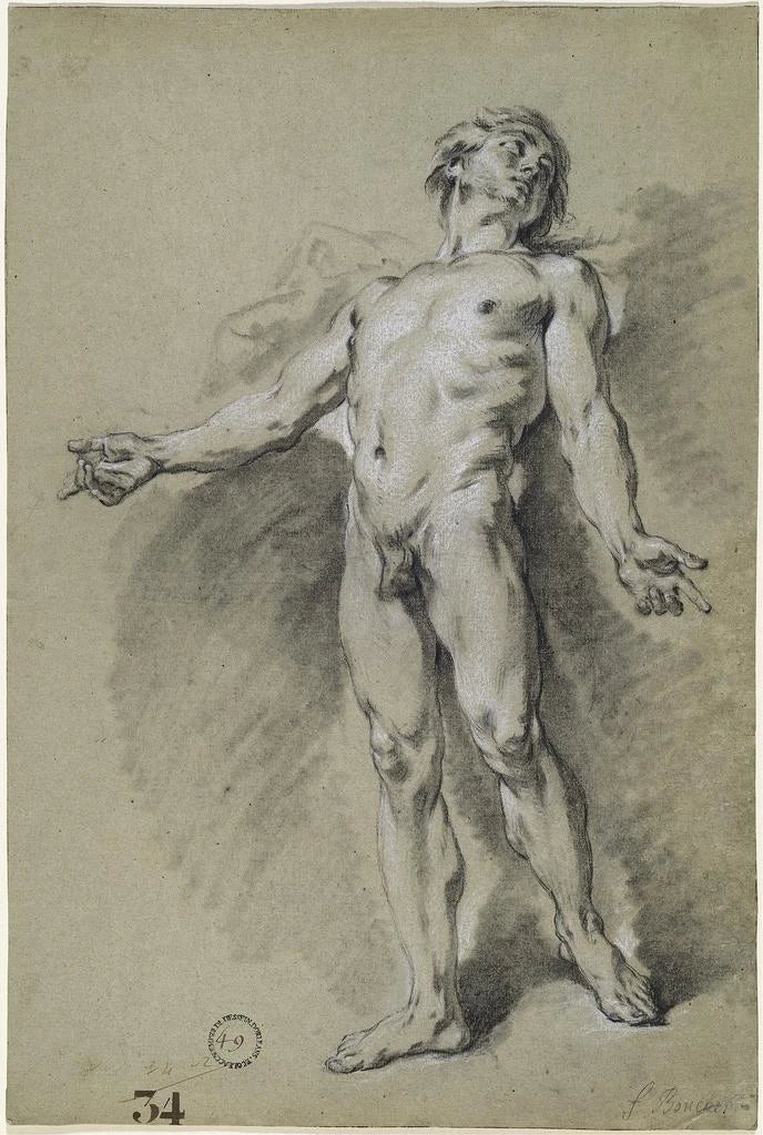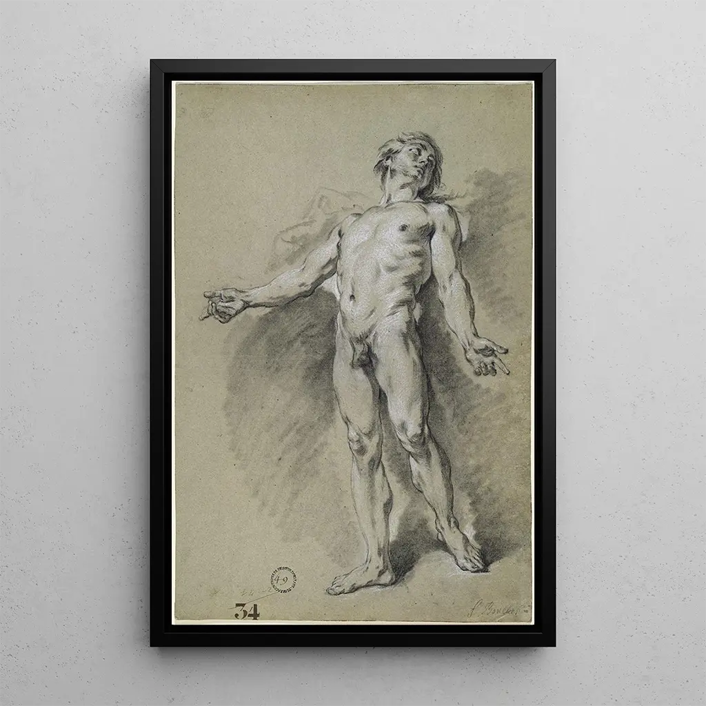 François Boucher, iconisch figuur van de rococo-beweging, markeerde de achttiende eeuw met zijn flamboyante stijl en zijn vermogen om de essentie van klassieke schoonheid vast te leggen. Geboren in 1703, werd hij beïnvloed door Italiaanse meesters en wist hij mythologische elementen in zijn kunstwerken te integreren. Zijn sensuele en decoratieve aanpak maakte hem tot een gewaardeerde kunstenaar aan het hof van Lodewijk XV. Boucher wist elegantie te combineren met een zekere lichtheid, waardoor hij zich onderscheidde in een rijke en gevarieerde artistieke context, waar verfijning op haar hoogtepunt was.