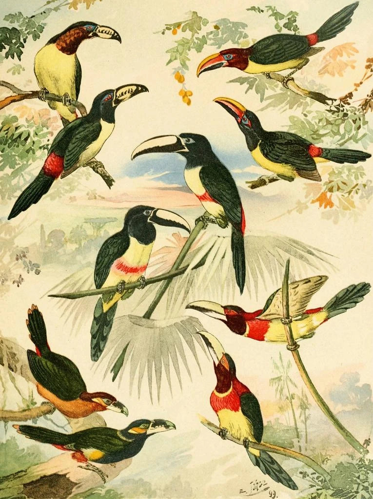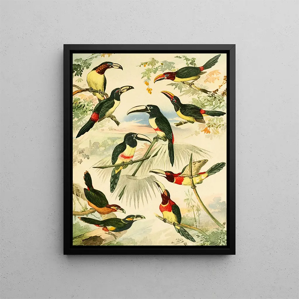 Reproductie Araçarys - Emil August Göldi – Boeiende introductie L'œuvre "Araçarys" van Emil August Göldi maakt deel uit van een artistieke traditie waarin natuur en mens samenkomen in een ontroerende harmonie. Dit stuk, doordrenkt met een zeldzame fijnheid, roept een wereld op waarin de schoonheid van fauna en flora verweven is met spiritualiteit. Bij het bekijken van dit werk wordt de toeschouwer meegenomen naar een universum waar elk detail lijkt een verhaal te vertellen, en elke kleur doordrenkt is van een diepe emotie. Göldi, door zijn kunst, nodigt ons uit om de mysteries van de natuur te verkennen en na te denken over onze plaats daarin. Stijl en uniekheid van het werk De stijl van Göldi wordt gekenmerkt door een minutieuze aanpak en een gevoeligheid voor licht die zijn creaties een bijna dromerige sfeer geven. In "Araçarys" combineren de delicate tinten en vloeiende vormen zich tot een levendig schilderij, waarin natuurlijke elementen lijken te dansen onder de zonnestralen. De compositie, zowel dynamisch als evenwichtig, toont een uitzonderlijke beheersing van schildertechnieken. Göldi slaagt erin de essentie van zijn onderwerpen vast te leggen, of het nu een vogel in volle vlucht is of een delicate bloem, door hen een ziel te geven. Het werk onderscheidt zich ook door het gedurfde gebruik van schaduwen en licht, wat een indrukwekkende diepte toevoegt aan de afgebeelde scène. Zo is "Araçarys" niet alleen een voorstelling, maar een ware zintuiglijke ervaring die uitnodigt tot contemplatie. De kunstenaar en zijn invloed Emil August Göldi, een iconische figuur in de naturalistische kunst, heeft naam gemaakt dankzij zijn onmiskenbare talent en passie voor de natuur. Geboren in een tijd waarin de kunst zich richtte op abstractie, koos Göldi ervoor zich te verankeren in de realiteit, met als doel de schoonheid van de natuurlijke wereld te eren. Zijn artistieke nalatenschap wordt gekenmerkt door een wil om het publiek bewust te maken van de kwetsbaarheid van het milieu. Via zijn werken wist hij het bewustzijn te vergroten over ecologische vraagstukken, nog voordat deze actuele zorgen werden. Zijn invloed is nog steeds voelbaar, zowel bij kunstenaars als bij kunstliefhebbers, die in hem een voorloper zien.