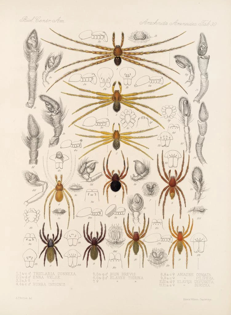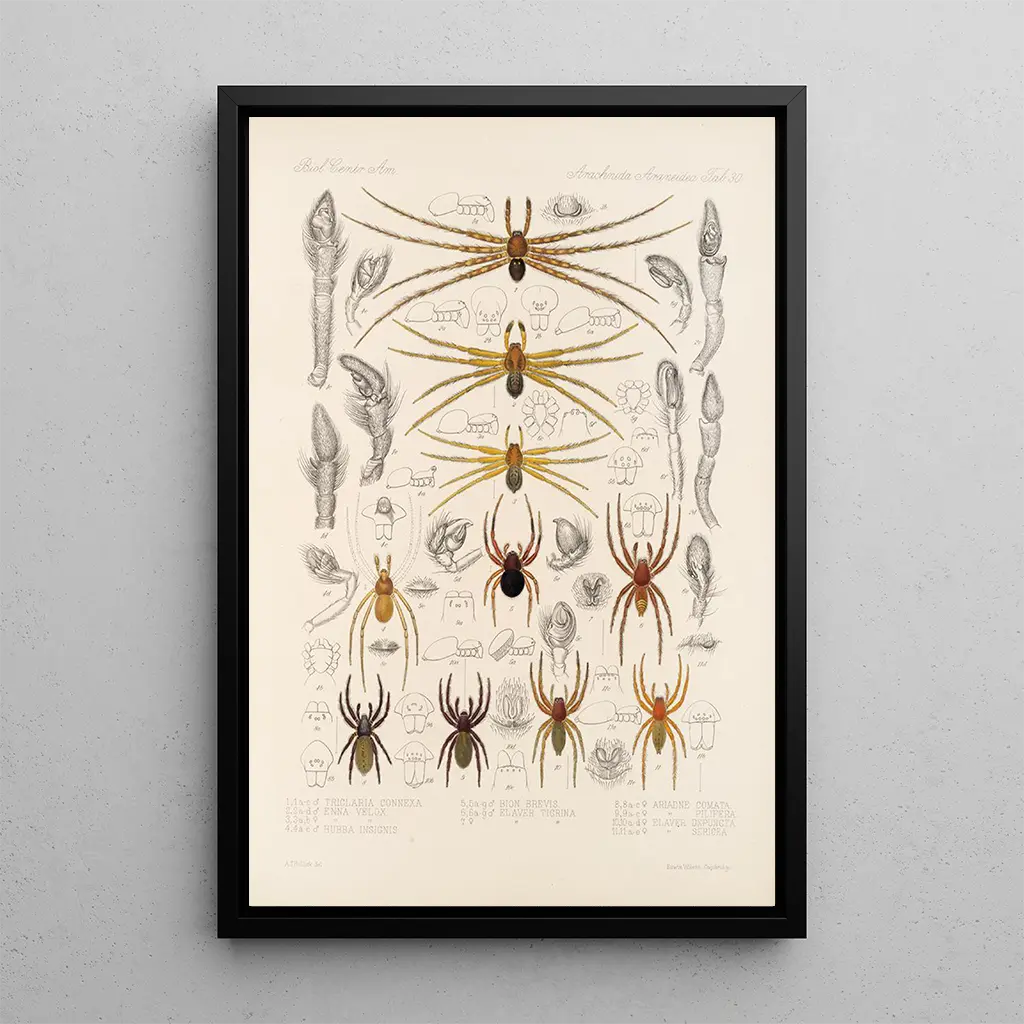 Frederick DuCane Godman, illustrator en naturalist uit de 19e eeuw, markeerde zijn tijd met werken die kunst en wetenschap combineerden. Zijn interesse in biodiversiteit en zijn wens om zijn ontdekkingen te delen, leidden tot het creëren van uiterst nauwkeurige illustraties, zoals Arachnida Araneidea Pl 30. Geïnspireerd door de wetenschappelijke vooruitgang van zijn tijd, wist Godman de essentie van de soorten die hij afbeeldde vast te leggen, waardoor hij een pionier werd op het gebied van naturalistische illustratie. Zijn nalatenschap leeft voort in zijn werken, die nog steeds passie en kunstliefhebbers inspireren.