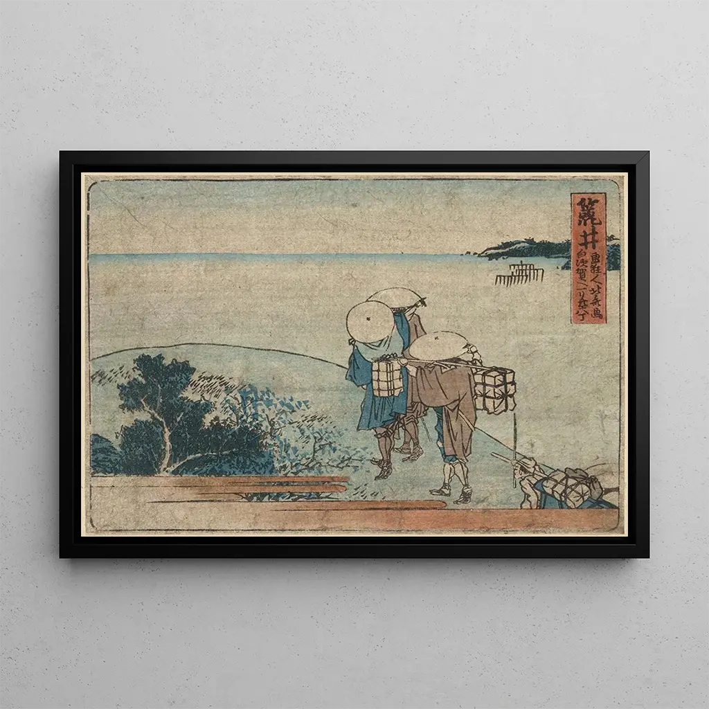 Arai : een dans van golven en bergen Arai, een iconisch werk van Katsushika Hokusai, roept een landschap op waar de zee en de berg samenkomen in een verbluffende harmonie. De levendige kleuren, typerend voor de Japanse houtsnede, creëren een sfeer die zowel sereen als dynamisch is. Hokusai, meester in de ukiyo-e-techniek, gebruikt vloeiende lijnen om de beweging van de golven vast te leggen, terwijl de nuances van blauw en groen diepte aan de scène toevoegen. Deze kunstdruk van Arai nodigt uit tot een meditatieve contemplatie, waarbij elk detail lijkt een verhaal te vertellen, een moment gevangen in de tijd. Katsushika Hokusai : het genie van ukiyo-e Katsushika Hokusai, een iconische figuur in de Japanse kunst van de 19e eeuw, heeft de wereld van de estampe revolutionair veranderd met zijn unieke stijl. Geboren in 1760, werd hij beïnvloed door de artistieke tradities van zijn tijd en integreerde hij elementen van de westerse cultuur. Hokusai is vooral bekend om zijn werken die de natuur vieren, zoals "De grote golf van Kanagawa". Zijn nalatenschap blijft voortleven en inspireert generaties kunstenaars over de hele wereld. De kunstdruk van Arai getuigt van zijn vaardigheid om de essentie van natuurlijke schoonheid vast te leggen, waardoor hij een hoeksteen van de Japanse kunst is. Een decoratief stuk met vele voordelen De kunstdruk van Arai is een ideale decoratieve keuze om elke ruimte te verrijken, of het nu een woonkamer, kantoor of slaapkamer is. De afdrukkwaliteit garandeert een trouwheid aan de kleuren en details van het originele werk, en brengt een vleugje elegantie en rust in uw interieur. Door voor dit doek te kiezen, geeft u uw inrichting een onmiskenbare esthetische aantrekkingskracht, terwijl u hulde brengt aan een van de grootste meesters van de Japanse kunst. Dit werk zal liefhebbers van kunst en fans van Aziatische cultuur aanspreken, en een culturele dimensie toevoegen aan uw decoratie.