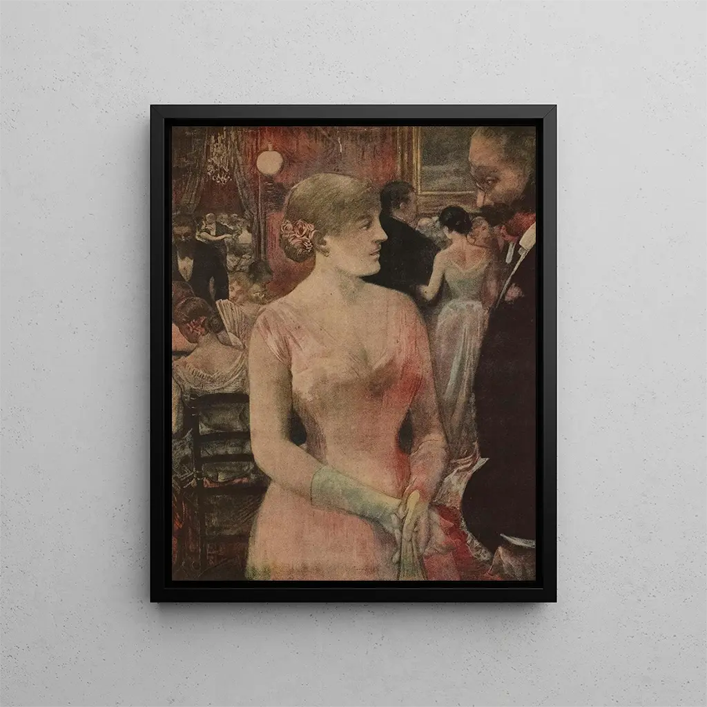 Kunstdruk Au bal - Anoniem – Boeiende introductie L'œuvre "Au bal" belichaamt de elegantie en levendigheid van dansavonden uit een vervlogen tijdperk. Dit schilderij, anoniem, slaagt erin de essentie van de bals te vangen, waar muziek en dans samenvloeien in een sfeer van feest en gezelligheid. Door een palet van levendige kleuren en gracieuze bewegingen dompelt de kunstenaar ons onder in een wereld waarin elk personage lijkt een verhaal te vertellen, en de kijker uitgenodigd wordt de opwinding van deze bijzondere momenten te voelen. De afgebeelde scène transporteert ons naar een wereld van verfijning, waar weelderige kostuums en stralende gezichten naast elkaar staan, en een samenleving in volle bloei onthullen. Stijl en uniekheid van de kunstdruk De kunstdruk onderscheidt zich door zijn impressionistische stijl, gekenmerkt door gedurfde penseelstreken en een subtiele toepassing van licht. De personages, hoewel gestileerd, stralen een voelbare menselijke warmte uit, waarbij elke glimlach en beweging een aanstekelijke vreugde oproept. De details van de kostuums, de plooien en accessoires worden met precisie behandeld die getuigt van diep respect voor de kunst van de voorstelling. De compositie is zorgvuldig georkestreerd, waarbij elk element zijn plaats vindt in een harmonieuze balans, waardoor de blik vrij door de scène kan dwalen. Dit schilderij beperkt zich niet tot het vastleggen van een bevroren moment in de tijd; het nodigt uit om de energie van een levendige avond te voelen, en zich de lachsalvo’s en gesprekken die door de lucht vliegen voor te stellen. De kunstenaar en zijn invloed Hoewel de kunstenaar van "Au bal" anoniem blijft, resoneert zijn werk met de invloed van grote meesters van het genre schilderkunst. Door zich te richten op alledaagse scènes, slaagt hij erin de eenvoudige voorstellingen te overstijgen en een visie te bieden vol poëzie en verfijning. Het vermogen om het moment met zo’n levendigheid vast te leggen, getuigt van technische meesterschap en onmiskenbare artistieke gevoeligheid. Dit werk, zowel tijdloos als diep geworteld in zijn tijdperk, roept de sociale bals van de 19e eeuw op, waarin kunst en cultuur verweven waren om een collectieve identiteit te vormen. Daarmee blijft het vele hedendaagse kunstenaars inspireren die op zoek zijn naar het verkennen van