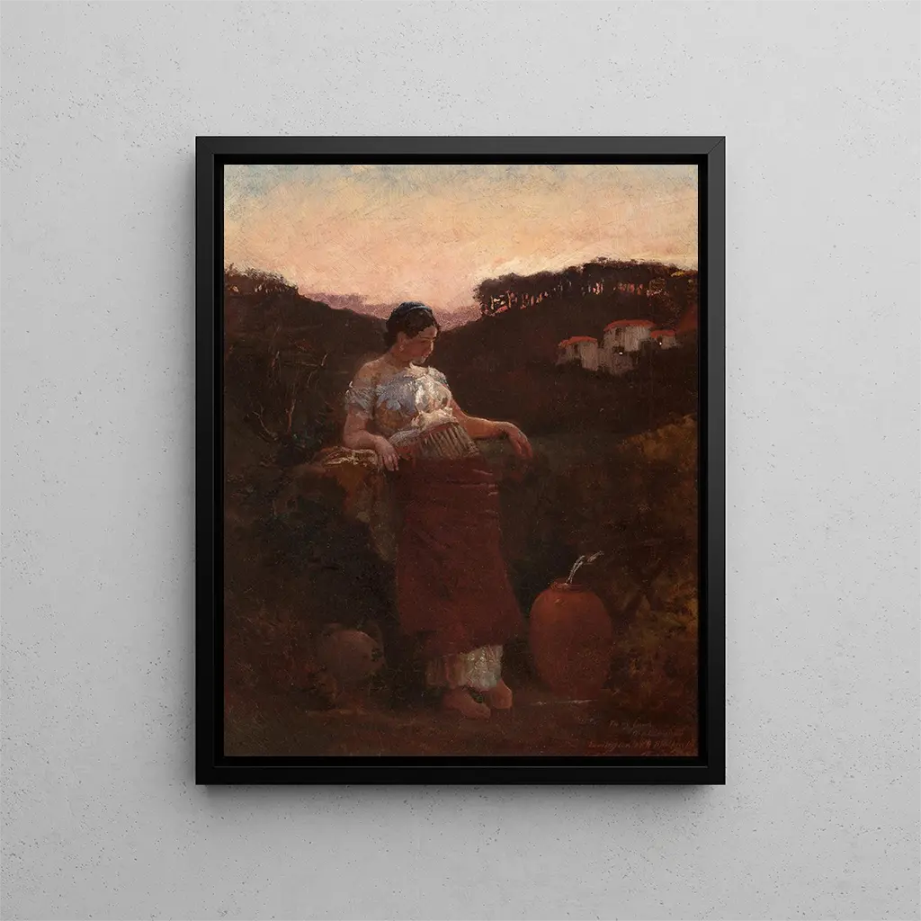 In het uitgestrekte panorama van de kunstgeschiedenis onderscheiden sommige werken zich door hun vermogen om een moment, een emotie of een sfeer vast te leggen. "Bij de put" van Edwin Howland Blashfield is een van die creaties die de toeschouwer meeneemt naar een wereld vol sereniteit en contemplatie. Deze schilderij roept niet alleen een moment uit het dagelijks leven op, maar belichaamt ook een esthetiek die de tijd overstijgt. Door de voorstelling van een vrouw bij de put nodigt Blashfield ons uit om na te denken over de eenvoud van alledaagse gebaren en hun intrinsieke schoonheid.