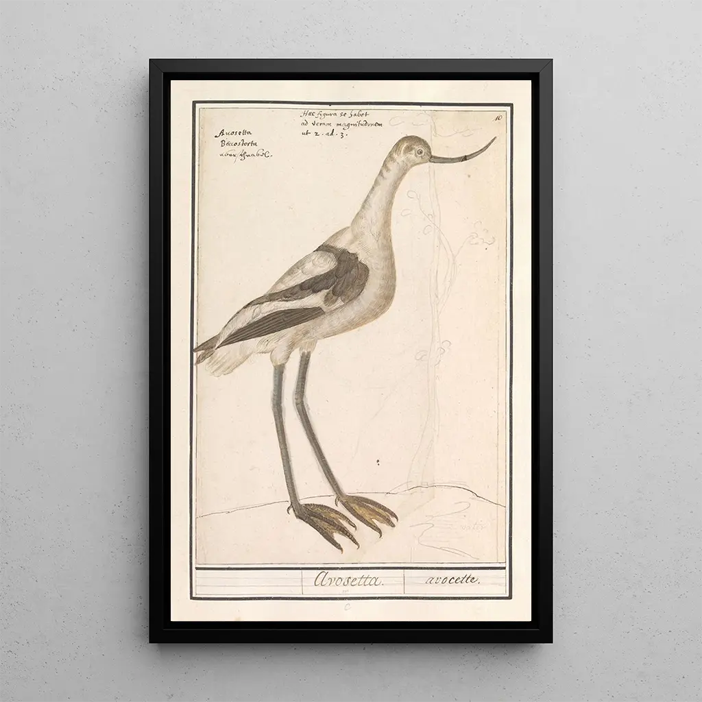 De kunstdruk van de Avocette Recurvirostra avosetta van Anselmus Botius de Boodt vangt de gratie en elegantie van deze watervogel. Met zijn lange gebogen snavel en kenmerkende verenkleed wordt de avocette afgebeeld in een dynamische houding, die de vloeiende beweging van zijn vlucht oproept. De zachte kleuren van het doek, die tinten wit, zwart en blauw combineren, creëren een serene sfeer en nodigen uit tot aandachtige observatie van de natuur. Elk detail, van de veren tot de weerspiegelingen in het water, getuigt van de talenten van de kunstenaar om de fauna te eren.