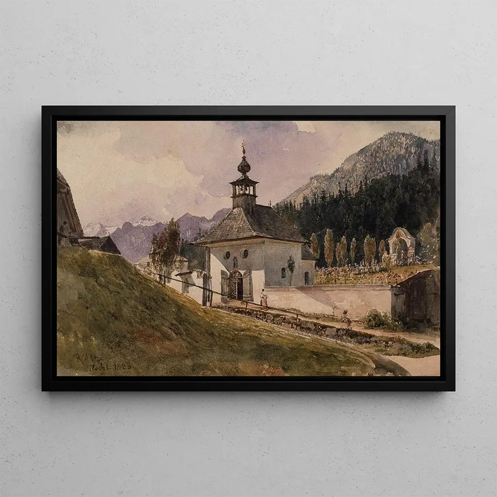 Rudolf von Alt, een iconische figuur van de 19e eeuw, wordt erkend om zijn landschappen en stadsgezichten, vooral in Oostenrijk. Geïnspireerd door het romantisme, wist hij de essentie van zijn tijd vast te leggen door middel van zijn werken. Zijn stijl, gekenmerkt door een minutieuze aandacht voor details en een subtiele toepassing van licht, heeft de geschiedenis van de Oostenrijkse kunst beïnvloed. Alt was ook lid van de Kunstacademie van Wenen en droeg bij aan de opkomst van de aquarel als artistieke techniek. "Begraafplaats in Ischl" getuigt van zijn talent en zijn toewijding aan een getrouwe weergave van de natuur en architectuur.