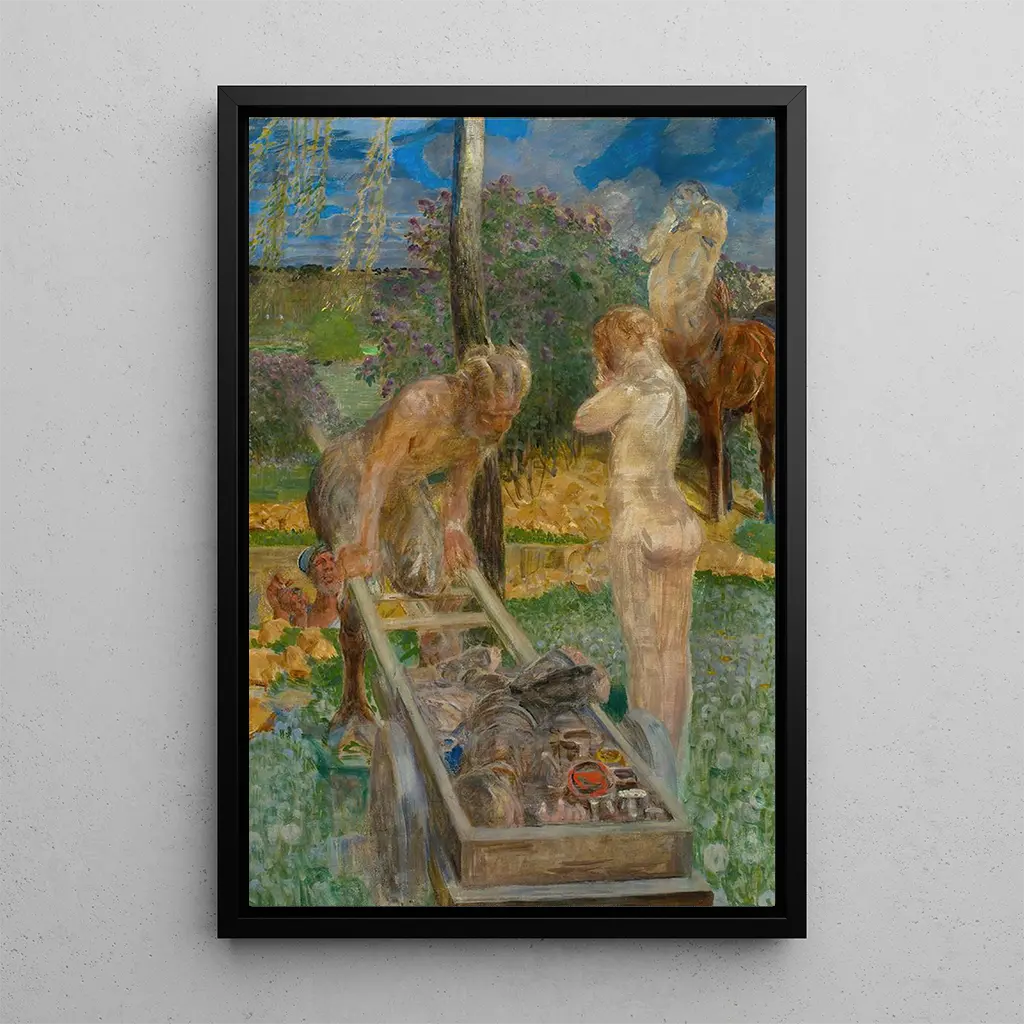 Funérailles d'un apprenti peintre : een ontroerende ode aan de vergankelijke creativiteit. In dit indrukwekkende kunstdruk vangt Jacek Malczewski de tragische essentie van het leven van een jonge kunstenaar. De donkere kleuren en aardetinten roepen een melancholische sfeer op, terwijl de complexe compositie, die menselijke figuren en symbolische elementen combineert, uitnodigt tot een diepe reflectie over sterfelijkheid en kunst. De figuren, vastgelegd in een begrafenismars, lijken de last te dragen van de onvoltooide dromen van de kunststudent. Dit kunstwerk, rijk aan details, roept een rauwe emotie en een aangrijpende schoonheid op, en echoot de kwetsbaarheid van het menselijke bestaan. Jacek Malczewski : iconische figuur van het Poolse symbolisme. Geboren in 1854, is Jacek Malczewski een vooraanstaand kunstenaar van de symbolistische beweging in Polen. Geïnspireerd door Europese kunststromingen ontwikkelt hij een unieke stijl, die mythologie, folklore en persoonlijke introspectie combineert. Zijn creatieve periode strekt zich uit tot het einde van de 19e eeuw en het begin van de 20e eeuw, een tijd van politieke en sociale onrust in Polen. Malczewski gebruikt zijn kunst om diepe thema's te verkennen zoals identiteit, de dood en de zoektocht naar betekenis, waardoor hij een pionier is van artistieke expressie in Polen. Zijn werken, waaronder "Funérailles d'un apprenti peintre", getuigen van zijn betrokkenheid bij de Poolse cultuur en geschiedenis. Een decoratief kunstdruk met vele voordelen. De kunstdruk van "Funérailles d'un apprenti peintre" is een ideale keuze om je interieur te verrijken, of het nu in een woonkamer, kantoor of slaapkamer is. De hoge kwaliteit van de reproductie en de trouw aan het originele kunstwerk garanderen een onmiskenbare esthetische aantrekkingskracht. Dit kunstwerk, met zijn diepe thema's en evocatieve sfeer, wekt nieuwsgierigheid en contemplatie op, en wordt zo een centraal punt in elke ruimte. Door deze kunstdruk in je decoratie te integreren, voeg je een vleugje elegantie en reflectie toe, terwijl je het artistieke erfgoed van een meester van het symbolisme eert.