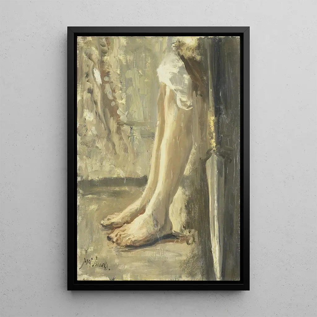 In "Jambes de David" vangt Jozef Israëls de kracht en vastberadenheid van een jonge man die in volle opmars is. De dynamische compositie, waarin de gespierde benen van de held worden benadrukt, roept een gevoel van beweging en energie op. De warme, aardse kleuren, typisch voor de kunstenaar, versterken de emotionele impact van het werk. Het licht speelt een essentiële rol door de details van het lichaam te verlichten en tegelijkertijd een zowel heroïsche als intieme sfeer te creëren. Dit doek nodigt de kijker uit om niet alleen de fysieke kracht te bewonderen, maar ook de veerkracht van de menselijke geest.