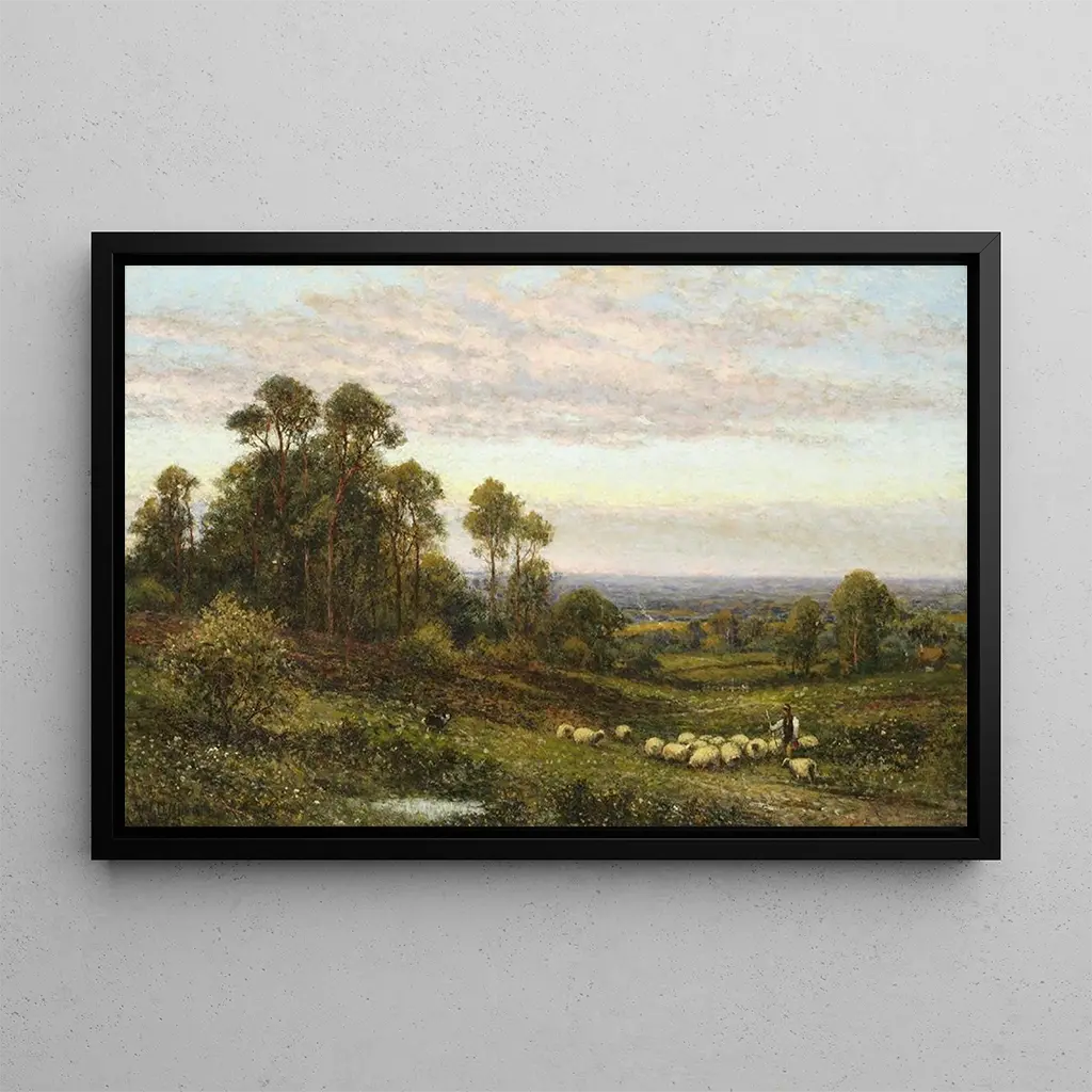 Deze kunstdruk van het schilderij "Berger en zijn kudde" is een perfecte keuze om je interieur te verfraaien. Of het nu in een slaapkamer, kantoor of woonkamer is, dit doek brengt een vleugje sereniteit en natuur in je decoratie. De kwaliteit van de afdruk garandeert een opmerkelijke trouw aan de kleuren en details van het originele werk, zodat je het talent van Alfred Augustus Glendening volledig kunt waarderen. Met zijn esthetische aantrekkingskracht en rustgevende sfeer is deze kunstdruk veel meer dan een eenvoudig decoratief element; het nodigt uit tot dromen en het bewonderen van de eenvoudige schoonheid van het landelijke leven.