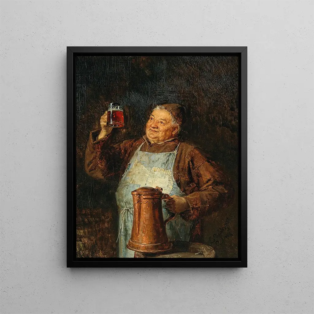 Reproductie Bierproeverij - Eduard von Grützner – Boeiende introductie In het rijke en kleurrijke universum van de kunst slagen sommige werken erin om verder te gaan dan puur visueel genot en ons onder te dompelen in een bijzondere sfeer. "Bierproeverij - Eduard von Grützner" is een van die creaties die, door haar compositie en onderwerp, momenten van gezelligheid en delen oproept. Dit werk, tegelijk speels en verfijnd, nodigt ons uit om een wereld te verkennen waar bier het symbool wordt van een cultuur en traditie die diep geworteld zijn in de Europese samenleving. Bij het bekijken van dit stuk wordt de toeschouwer meegenomen naar een warme scène, waar lachen en gesprekken zich vermengen, en zo de vreugde van het leven vieren. Stijl en uniekheid van het werk De stijl van Eduard von Grützner onderscheidt zich door zijn vermogen om alledaagse momenten met opmerkelijke precisie en oog voor detail vast te leggen. In "Bierproeverij" speelt de kunstenaar vakkundig met licht en schaduw, waardoor een warme en uitnodigende sfeer ontstaat. De personages, afgebeeld in een ontspannen houding, lijken betrokken bij een levendig gesprek, hun gezichtsuitdrukkingen onthullen een scala aan emoties, van vreugde tot kameraadschap. De warme kleuren, gedomineerd door gouden en bruine tinten, versterken deze sfeer van gezelligheid. Von Grützner beperkt zich niet tot het schilderen van een eenvoudige proeverij, hij vereeuwigt een moment van delen, een viering van vriendschap en goede humeur. De kunstenaar en zijn invloed Eduard von Grützner, geboren in 1846 in Duitsland, is een schilder wiens werk vaak wordt geassocieerd met het afbeelden van sociale scènes en volks tradities. Zijn carrière, gekenmerkt door een bijzondere aandacht voor details en een gevoeligheid voor de mens, heeft hem een naam bezorgd in de kunstwereld. Geïnspireerd door de realistische beweging, heeft hij getracht authentieke momenten uit het dagelijks leven te weergeven, terwijl hij er een vleugje lichtheid en humor aan toevoegt. Zijn werken, waaronder "Bierproeverij", getuigen van een diepgaand begrip van menselijke interacties en een verlangen om de eenvoudige geneugten van het bestaan te vieren. Door zijn