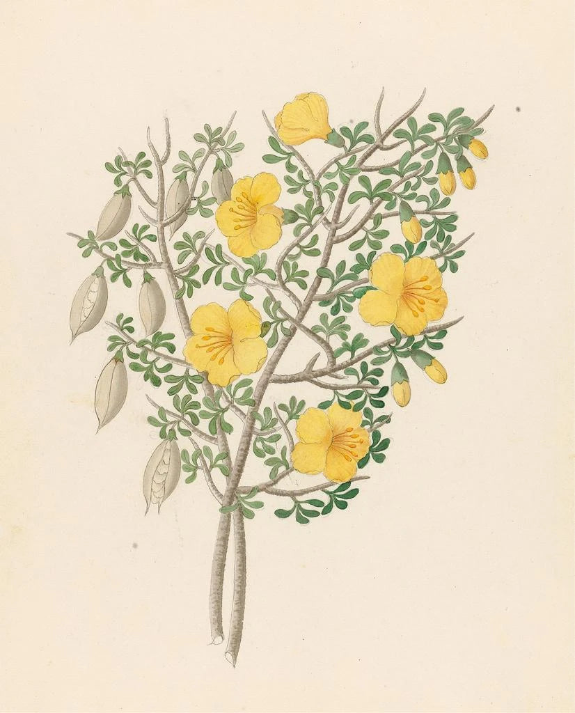 In het fascinerende universum van botanische kunst staat het werk "Bignonia Nova Espèce Rhigozum obovatum" van Clemenz Heinrich Wehdemann als een getuigenis van de schoonheid en complexiteit van de natuur. Dit stuk, tegelijk delicaat en levendig, dompelt ons onder in een wereld waar wetenschappelijke precisie en esthetische schoonheid samenkomen. Wehdemann, als kunstenaar, slaagt erin om de eenvoudige illustratie te overstijgen en een meeslepende ervaring te bieden die uitnodigt tot contemplatie. De voorstelling van deze plant, met haar organische vormen en genuanceerde kleuren, roept een harmonie op tussen mens en natuur, een verbinding die diep resoneert in ieder van ons.