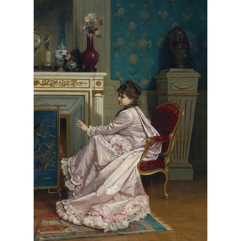 Kunstdruk | Aan de haard - Auguste Toulmouche