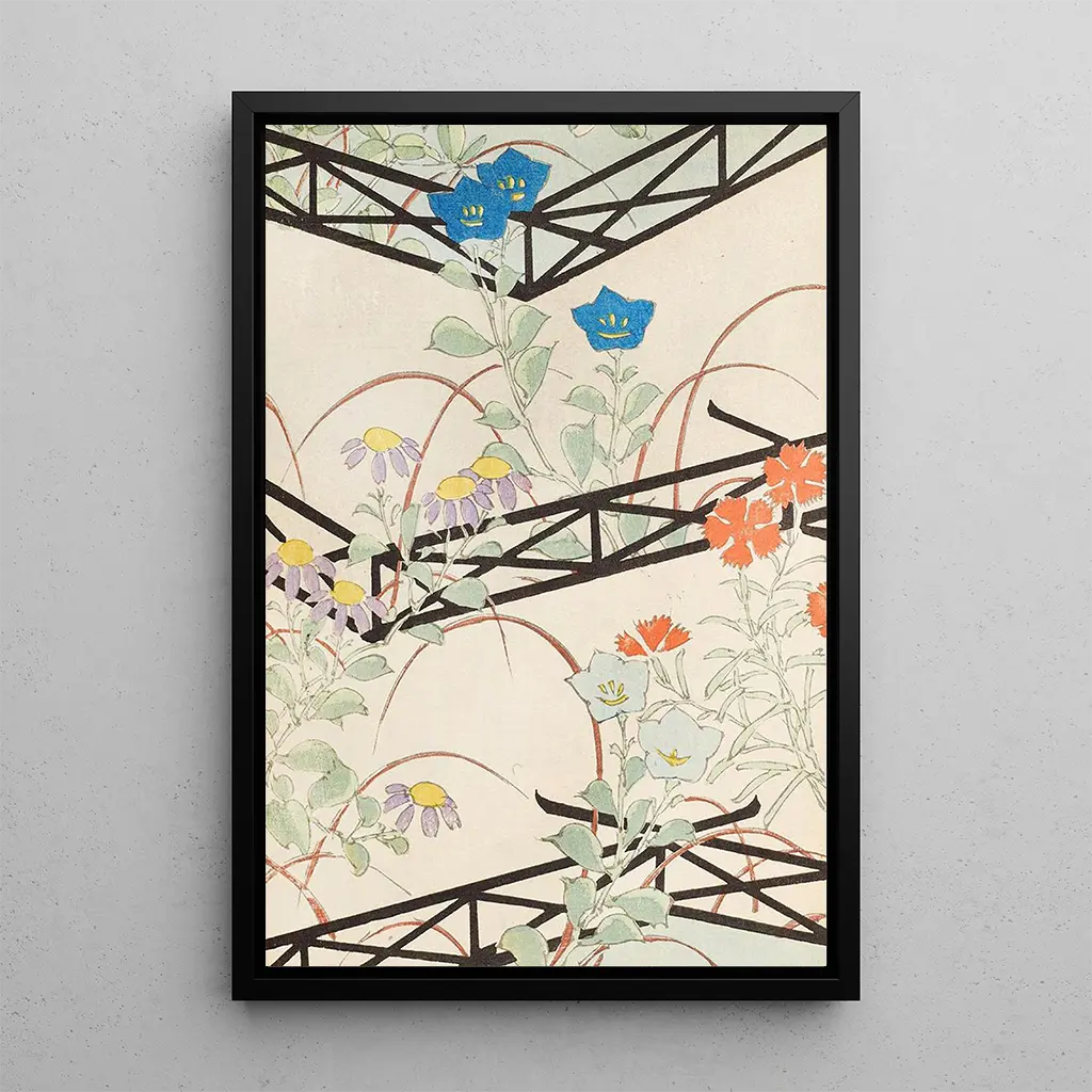 De kunstdruk van Bijutsukai Pl21 is een ware ode aan de vergankelijke schoonheid van de natuur. Furuya Korin slaagt er met dit werk in om het vluchtige moment van een bloeiende bloem vast te leggen. De levendige kleuren en de minutieuze details getuigen van zijn vaardigheid om de delicatesse van de bloemblaadjes en de rijkdom van de nuances te weergeven. De compositie, zowel dynamisch als harmonieus, nodigt de kijker uit om zich te verwonderen over de pracht van de natuur. Elke blik op dit doek onthult nieuwe subtiliteiten, waardoor de visuele ervaring telkens wordt vernieuwd.